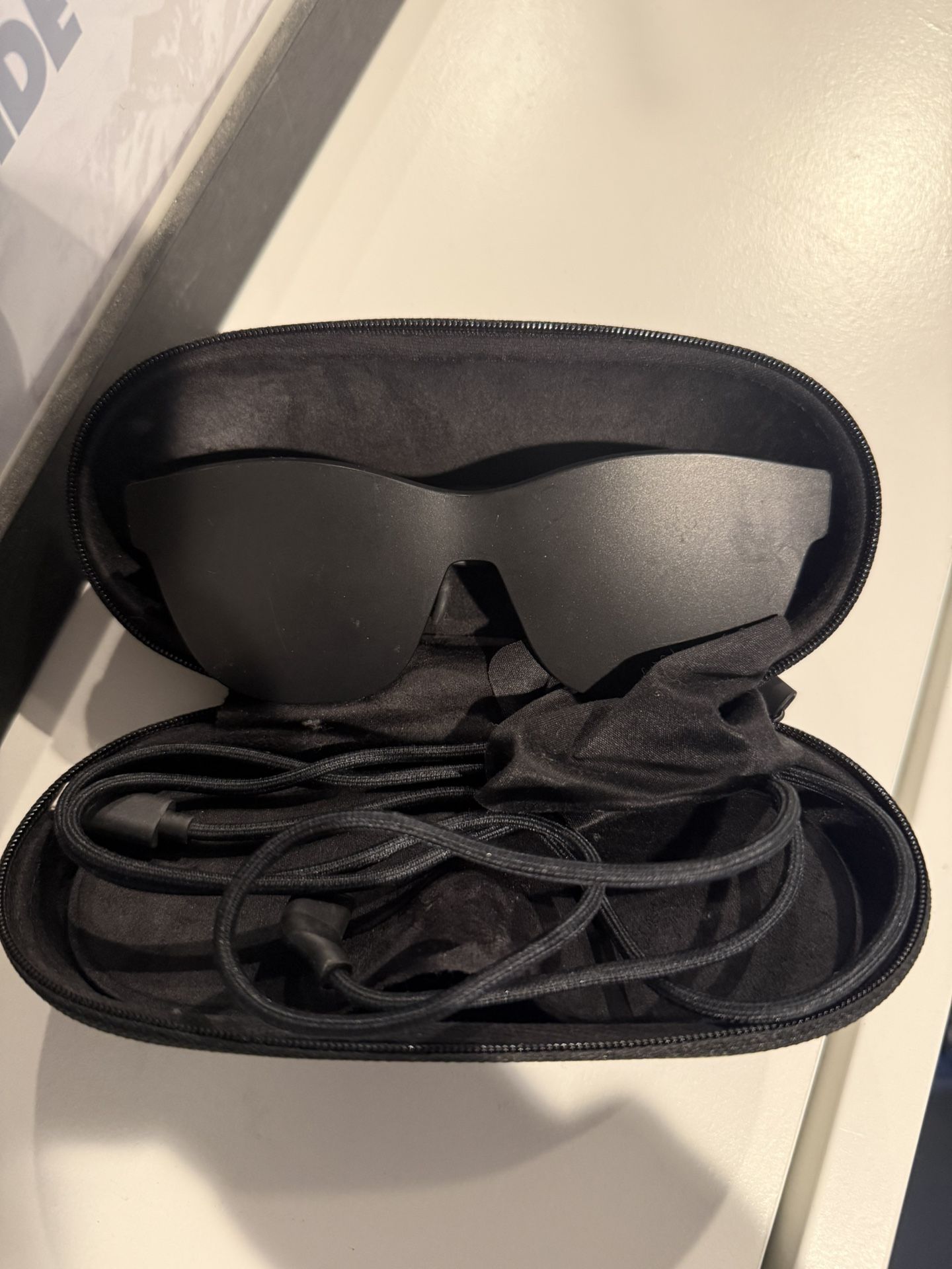Selling a pair of XREAL Air (formerly Nreal Air) AR Glasses in excellent working condition. The glasses are clean, fully functional, and have been gently used in a smoke-free environment. Includes: • XREAL Air AR Glasses • Original hard carrying case • USB-C connection cable Features: • Lightweight AR glasses with Sony micro-OLED displays • Works with compatible USB-C devices (phones, Steam Deck, laptops, etc.) • Great for watching movies, gaming, and productivity on a virtual large screen Condition: • Fully functional • Minor cosmetic wear from normal use (see photos) • No cracks or damage to lenses Reason for selling: No longer using it. Feel free to message me if you have any questions.