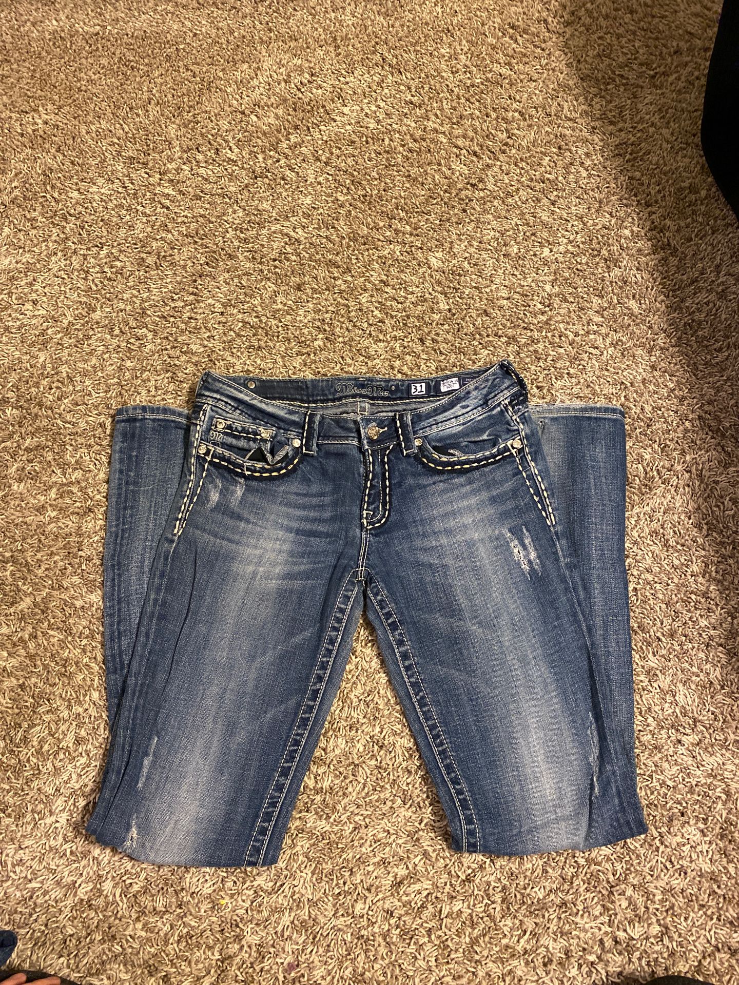 Gently worn Miss Me Jeans, size 31 (small fray near boot)