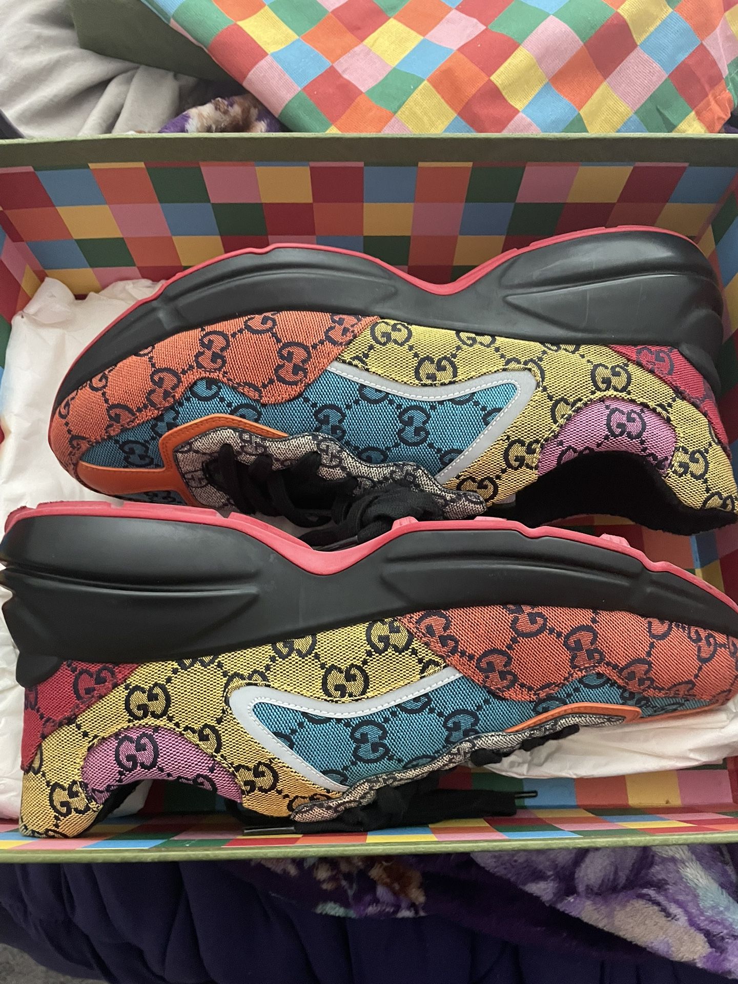 Men’s Gucci Rhyton 'GG Multi-Color' sneakers worn once with dustbag and Box.