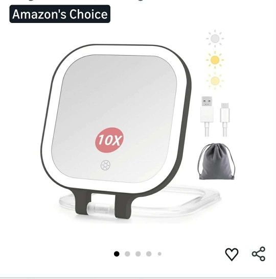 5799: New Rechargeable Travel Makeup Vanity Mirror with Lights and Magnification, 7" Portable 1X/10X Magnifying Mirror with 4 Color Light, Lighted Makeup Mirror with Magnification, Folding LED - Black Room Type: Bedroom Shape: Rectangular Product Dimensions 8.11"L x 7.09"W Frame Material: 60% high quality ABS, 40% glass Style: Modern 10x HD Double-Sided Magnifying Mirror: Easily switch between 1x and 10x magnifying makeup mirror, perfect for close-up eyebrow shaping or makeup, such as makeup, contact lens wearing, eyebrow shaping, shaving, hairdressing, beauty or applying mascara, etc. The classic double-sided design makes it easier for you to get a perfect makeup with this travel lighted makeup mirror with magnification. * PLEASE NOTE: When using the 10x magnification side, you need to hold it about 4 inches away from your eyes first Built-in 2000mAh Rechargeable Battery: The LED travel makeup mirror has built-in 72 high-brightness LED lamp beads, which are very durable and have a service life of up to 50,000 hours. Built-in 2000mah battery, which can be fully charged in two hours, and can be used wirelessly for 4-8 hours continuously after being fully charged Smart Touch-Sensitive Control and Memory Function: The vanity mirror with LED lights has three built-in color temperature modes, providing white light, warm light, natural light and brightness adjustment. The light is soft and can cover every corner of your face. Single-click short press to turn on and change the light color, single-click long press to adjust the light brightness, to meet all your needs in different environments. This wall mounted magnifying mirror also has an intelligent light memory function, which can easily use the last adjusted brightness, helping you quickly get the most suitable brightness and create a perfect makeup Portable Folding Lighted Mirror: This travel lighted makeup mirror is 7.09*8.11 inches long and only 0.83 inches thick when folded. The compact design takes up very little space and is very suitable for travel or daily use. The bracket on the bottom allows the mirror to stand stably on the countertop, preventing the light up travel magnifying mirror from slipping or falling during use. The white exterior and transparent base can be placed in harmony with any scene. It is not only a professional magnifying travel makeup mirror with lights that can be used in home, bathroom, hotel, etc., but also a desk lamp, night light, atmosphere light and more Memorable Present: Whether it's for Mother's Day presents, Valentine's Day presents, birthday presents, or Christmas presents, the hand mirror with magnification makes an excellent present for the special women in your life, including mom, wife, daughter, friend, or any other special person. The precise makeup look will send them beauty, making them more confident. This double-sided travel LED makeup mirror will ensure everything on your face is perfect. It combines practicality and style, making it the ideal present for birthdays, holidays, or any special occasion.