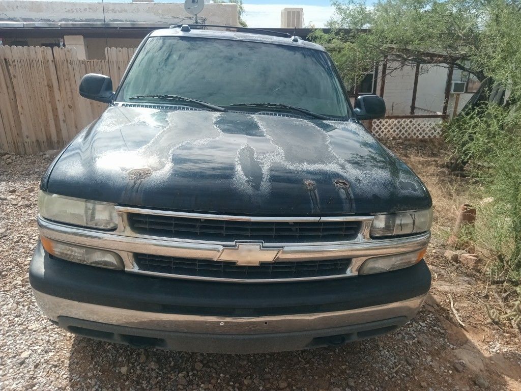 I have here a 2005 Chevy Tahoe LT .. It has 300,000 miles. Raggedy .Still runs and drives. No overheating. Sunroof no AC. heat work. Grey leather seats. The black paint faded. It has some rust specs holes around hood and rust holes at the rocker panels and bottom doors. dent on left back door. . Has a clean Arizona title. It's a front wheel drive!! the rear wheel drive is disconnected from failed opinion bearing. and clamped pinion yoke sealed off. But drives 5.3 engine is good and transmission is good. Trade for any project or broke down vehicle.