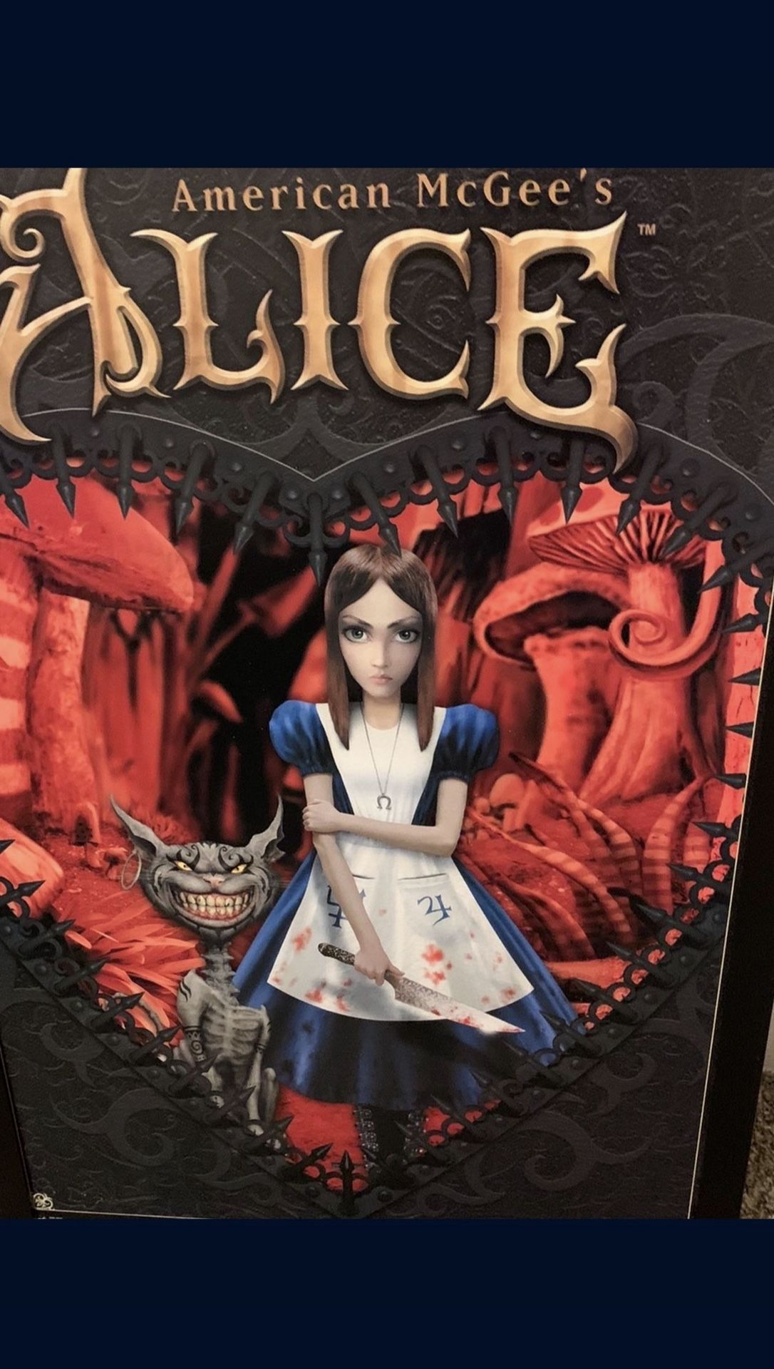 Very rare American McGee’s Alice red heart frame by EA sports. Approximately 24x36 in. In very good condition. Small damage please see picture for reference. Any questions just ask. Best offer takes it. Se habla espanol Tag: gamer pc ps4 ps5 Xbox gaming game stop call of duty Nintendo switch fortnite roblox Star Wars toys toy holiday gift girl boy Jordan Nike adidas Reebok shoe shoes sz size online