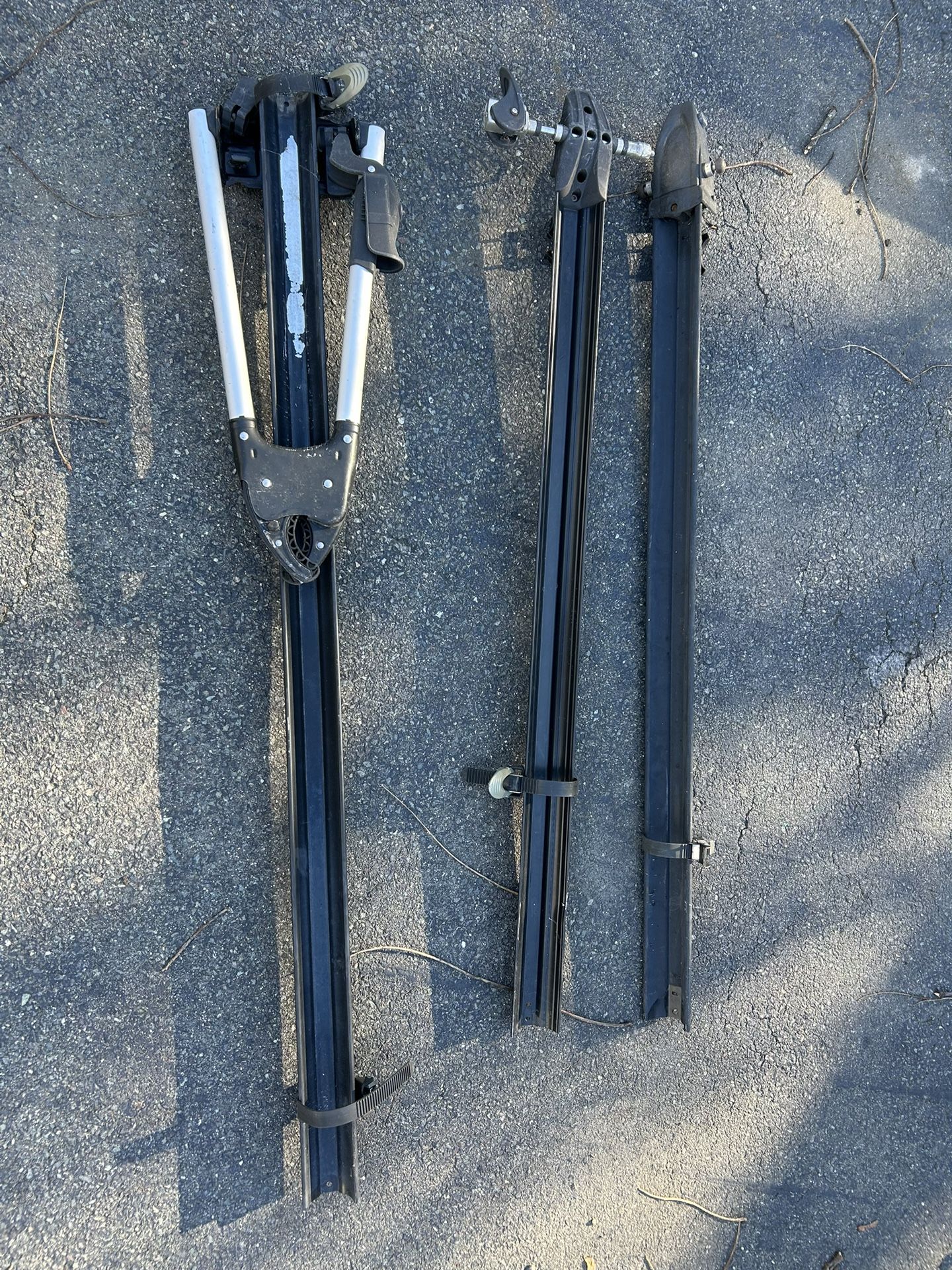 3 Thule Roof top Bike Racks. 2 are the fork mount type and one is the big mouth type which you do not need to remove the front wheel of the bike to use.