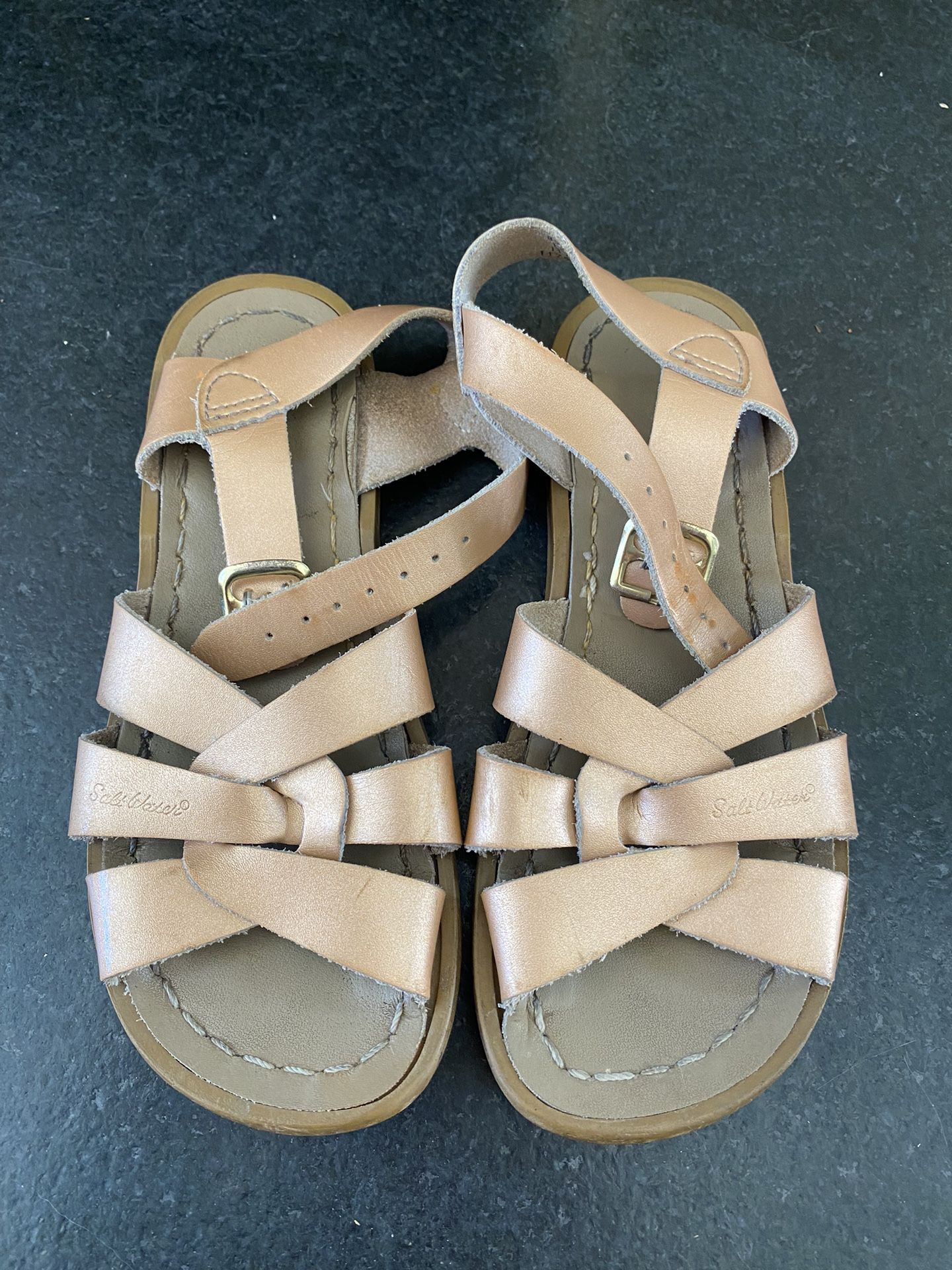 Kids size 12 saltwater sandals in rose gold