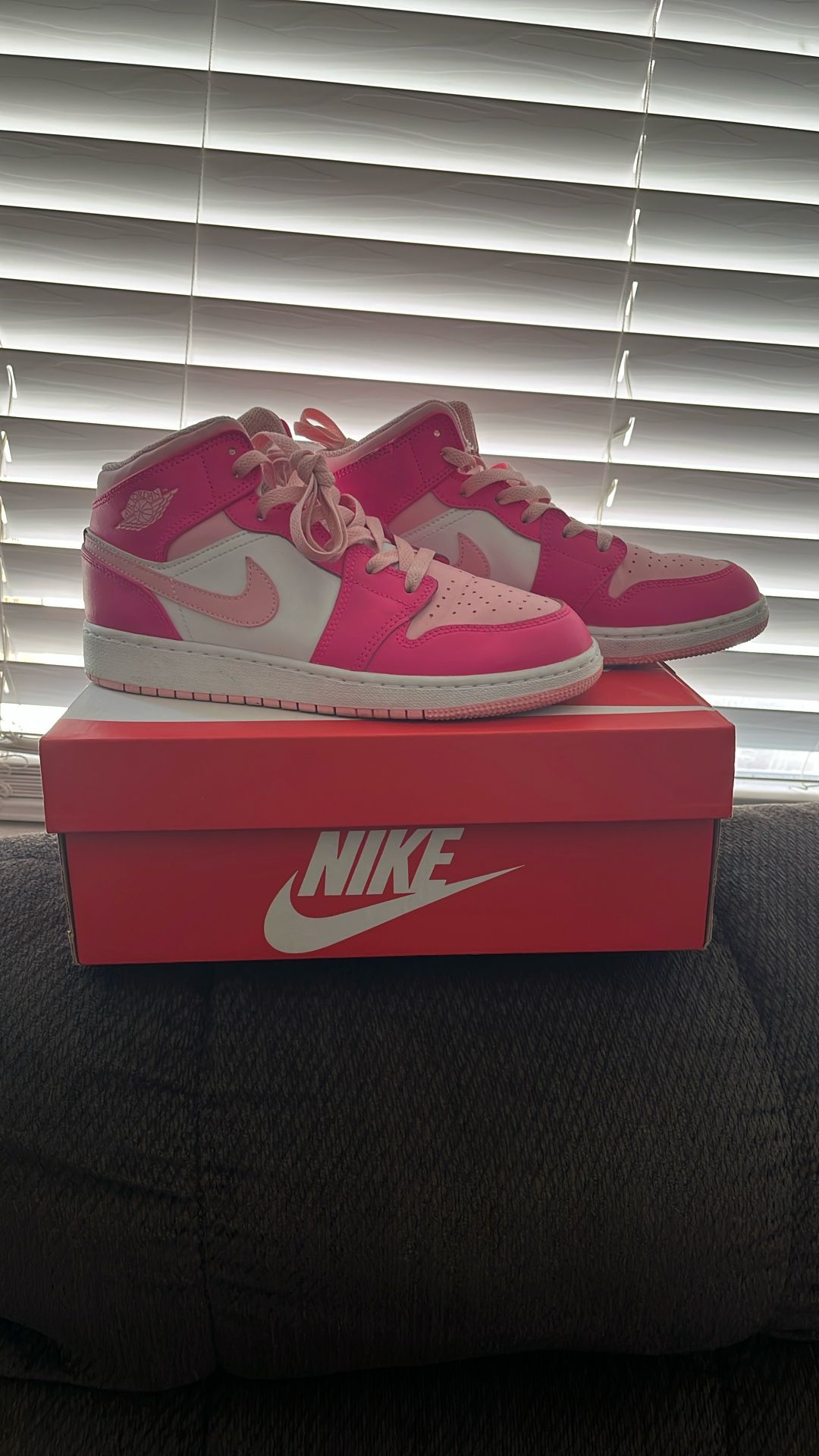 Slightly worn, like new condition. White, Light Pink, & Dark Pink High top, Nike Shoes.