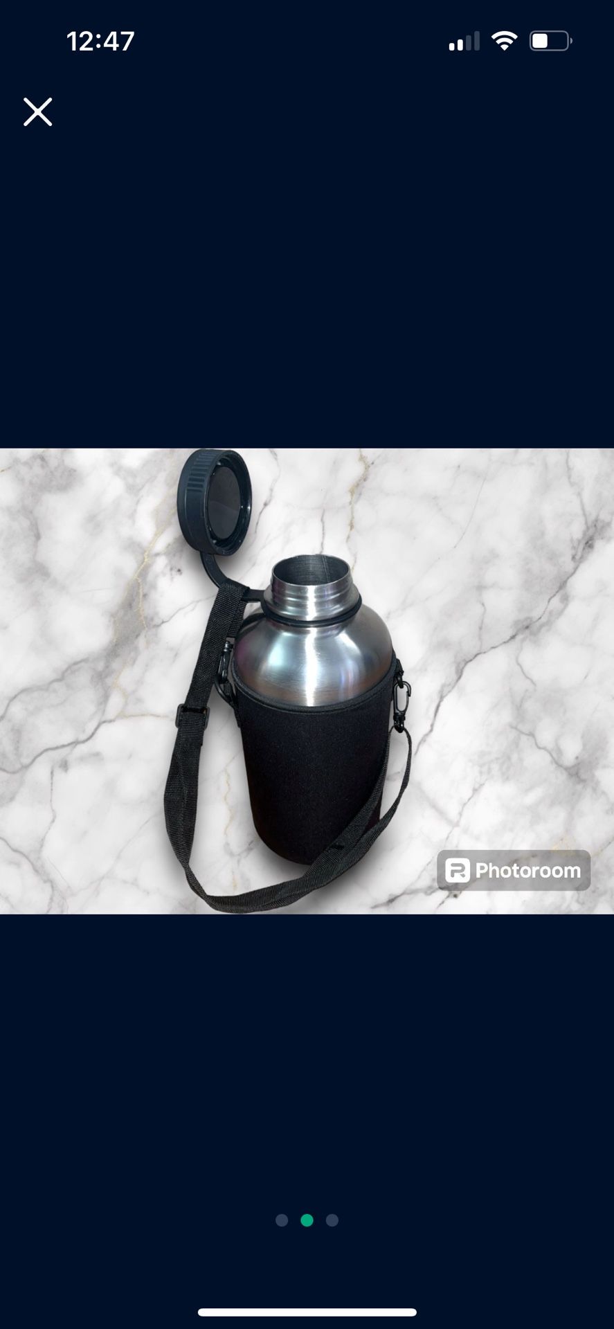 (I currently have 2 of these) Brand new never opened. Best offer takes it with delivery. •XL Metal Water Bottle, BPA Free, Insulated, Carry Strap & Sleeve Silver/Black. Its screw lock ensures that there are no accidental spillages, minimizing mess. The insulated bottle keeps your 68oz of liquid at just the right temperature, whether it's a HOT cup of coffee or a refreshing COLD drink.