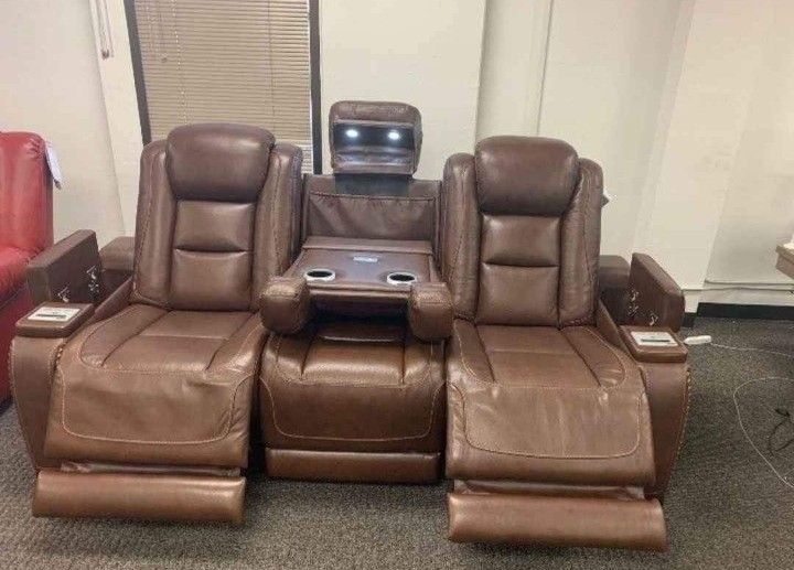 Real Leather Power Recliner Sofa By ASHLEY FINANCING AVAILABLE