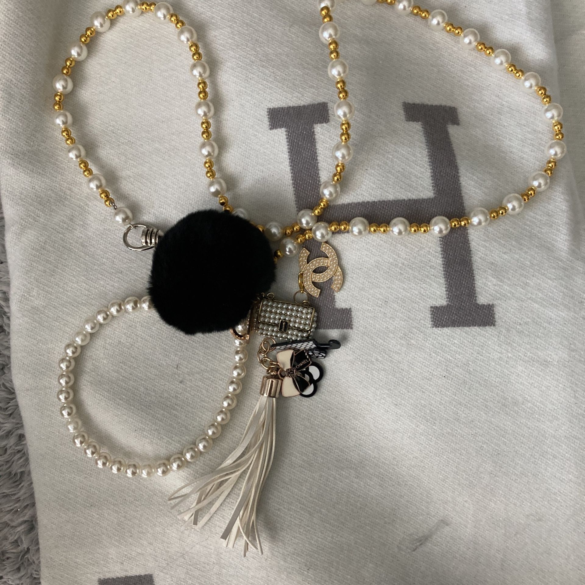 Pearl Golden Black And White Designer Bling Leash Dog Cat