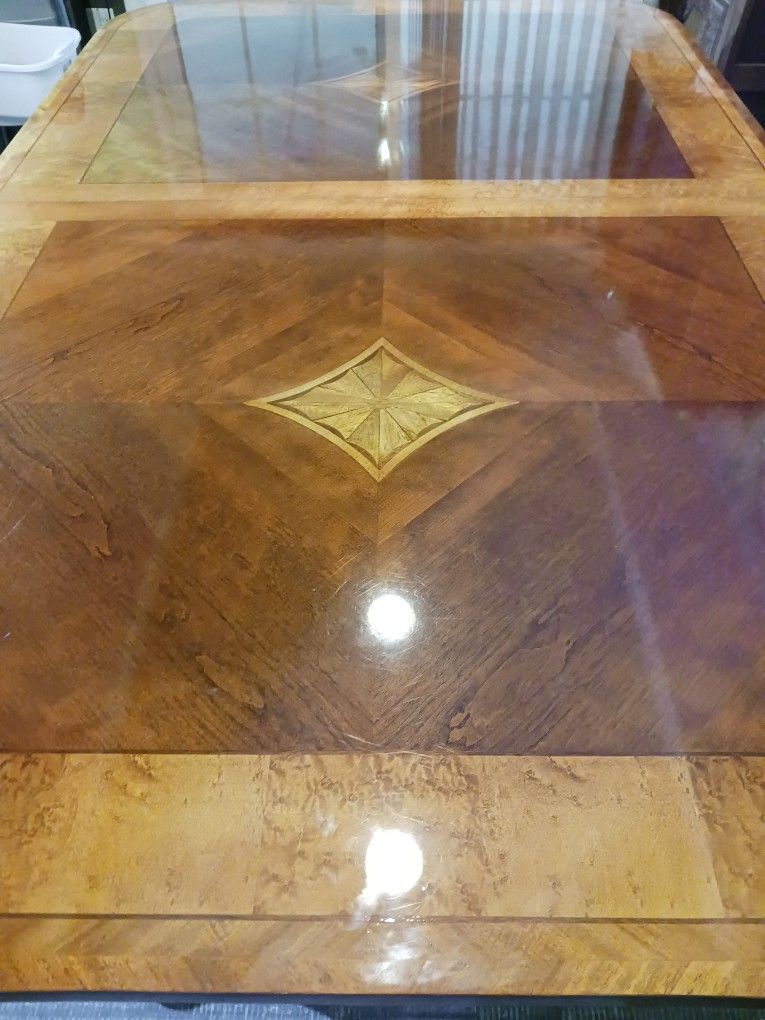 Dining room table and chairs Beautiful set ..72" long plus 1 leaf measuring 15" overall of both 87"bye 44" wide 27 1/2" high ,comes with 2 captain chairs and 4 regular. Beautiful set asking $500..stunning piece