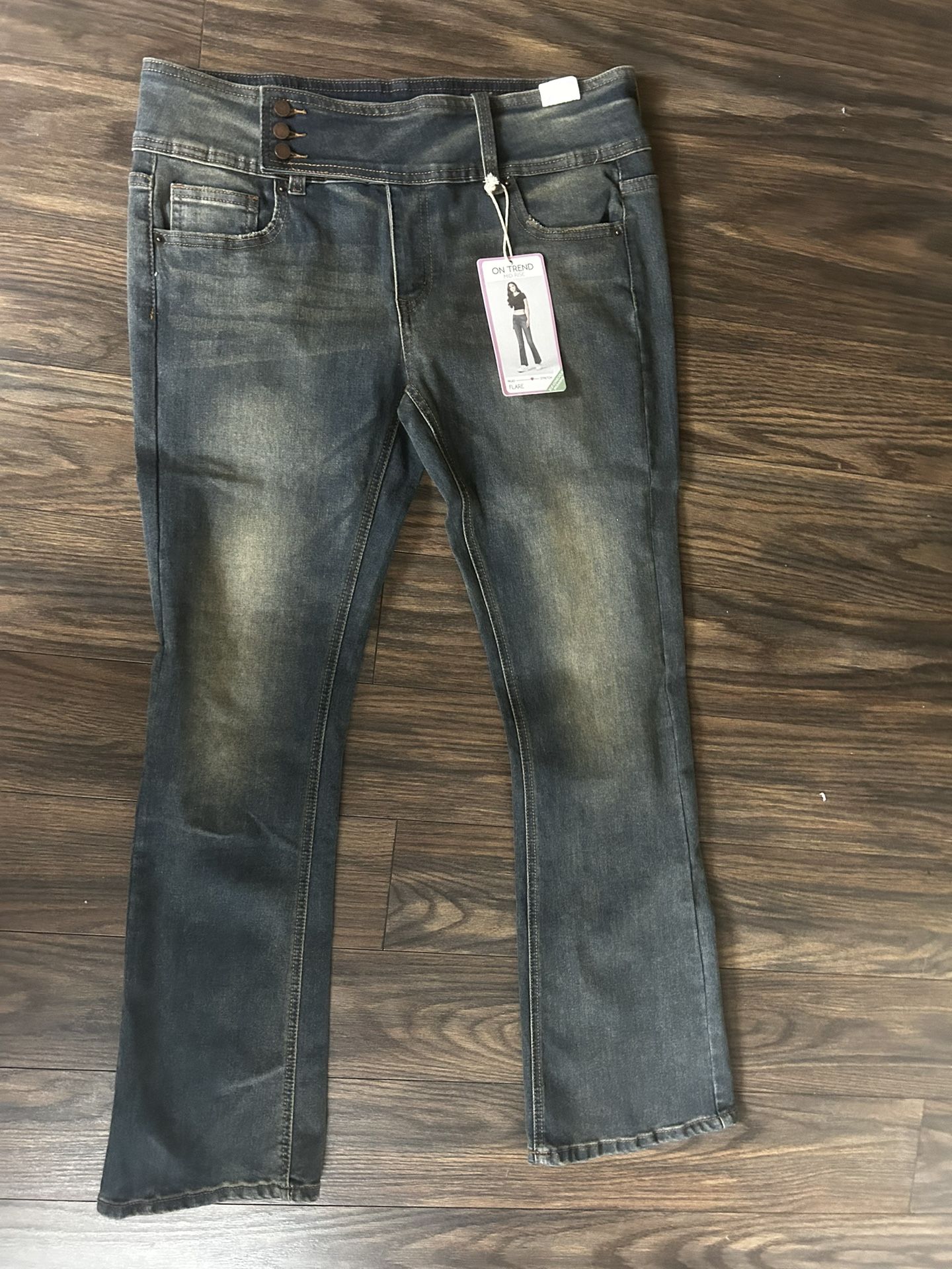 These are mid rise flare jeans with some stretch size 13 . Brand new with tag.