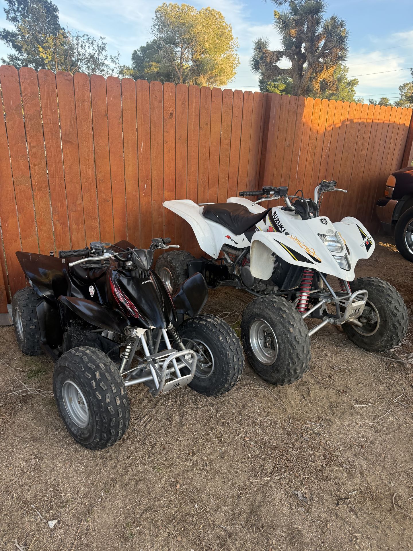 both start up been sitting for a while ltz has dead battery i can jump start it ltz no paperwork got it in trade last guy lost pink trx has dmv bill of sale 2,700 takes both