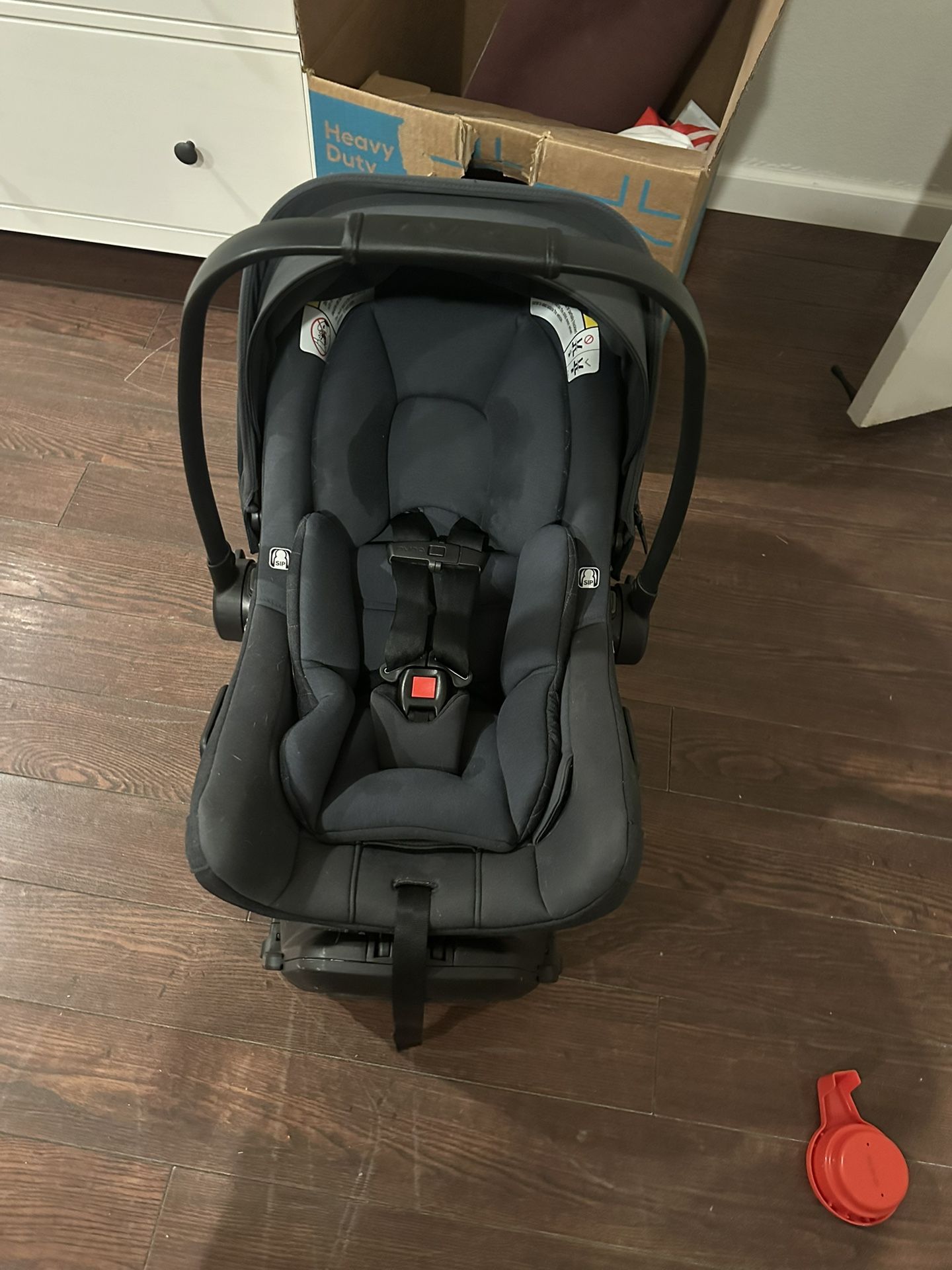 Used but in a good condition Never involved in a car accident Non smoker Comes with base or you can use baseless Can use up to 30lbs and 30 inches, lasted the whole 1st year for my baby. Comes with extra cushions (brand new, I never used those) I forgot I had them. It is lightweight Easy to install, latch system Has UPF 50+ canopy with sky drape that easily zips up. The buckles are magnetic and can be hold off to side while you place baby in. Green gold certified Compatible with all nuna strollers.