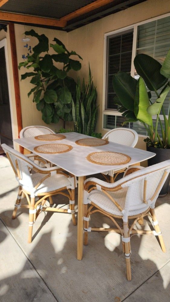 This dining table is really nice and easy to match with any chairs . Table top was refinished and is in great condition sturdy, nothing broken ready to set in your hime and be used. =) $100 or best offer! ** Chairs and Placemats not included **