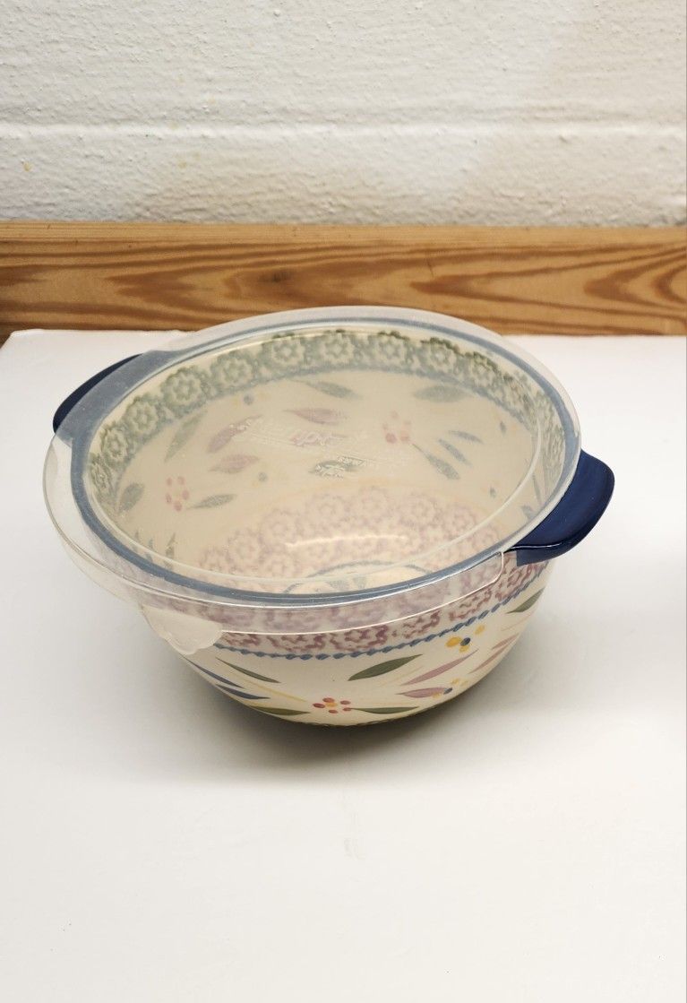 Temptations ovenware serving bowl. 1.5 quart 7" bowl includes storage lid. Very good condition with no cracks or chips.