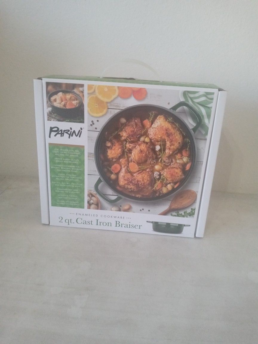 ENAMELED CAST IRON TWIN CARRY HANDLES VERSATILE COOKWARE IDEAL FOR BAKING, ROASTING, SHALLOW FRYING AND MORE. COMMERCIAL GRADE