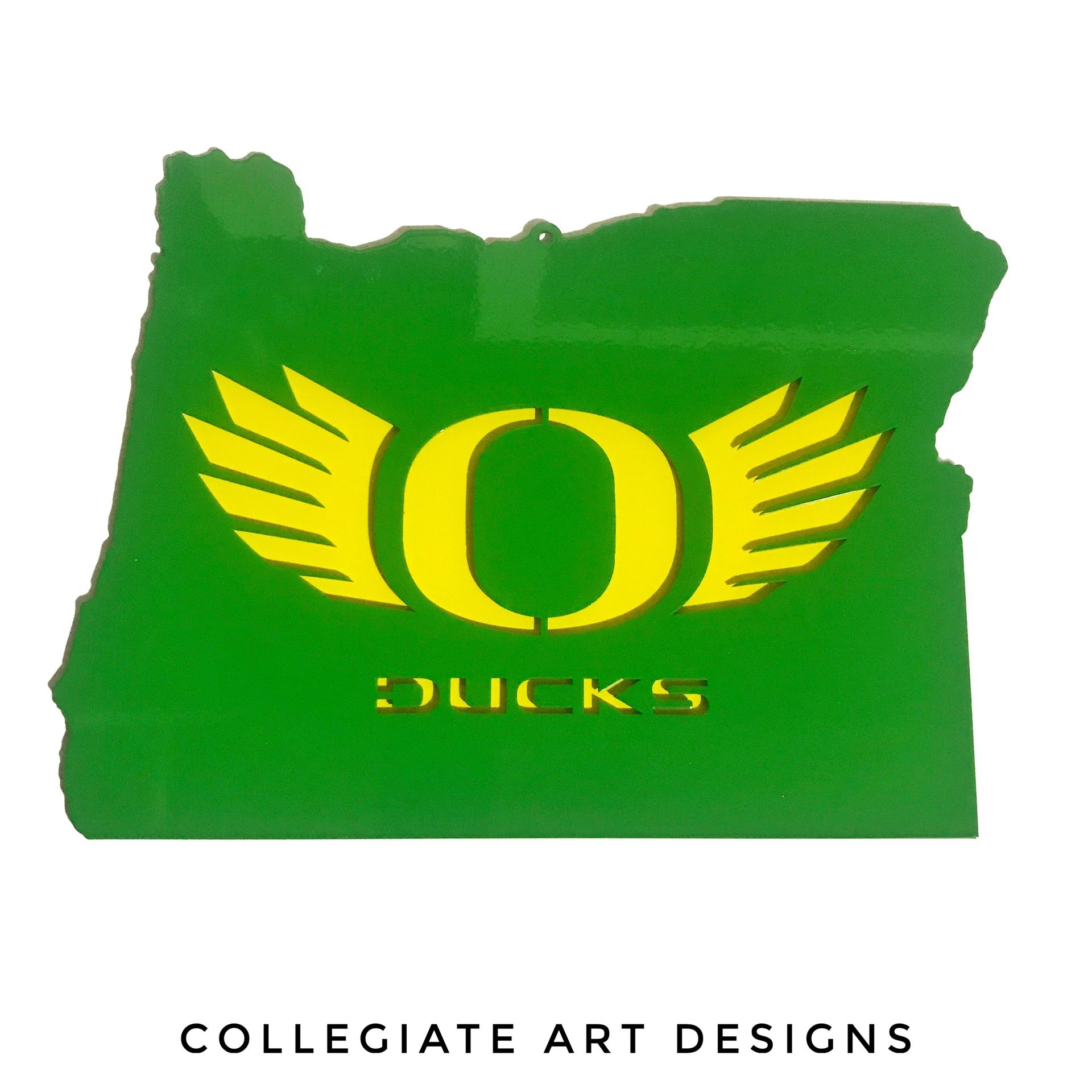 Want to show off your University of Oregon team pride? These O Oregon within the outline of the State of Oregon are ideal to do just that. This Officially License Collegiate Product allows you to place your favorite team around the house or office. Precision laser cut from steel with a durable chemical resistant powder coat. This wall piece can be displayed inside or outside and will look amazing forever! Dimensions: 14" Wide X 10" Tall Officially Licensed Collegiate Product Strong, durable construction Precise University of Oregon logo/insignia Made in OREGON Comes with authentic collegiate hologram sticker verifying authenticity To purchase or see other licensed artwork visit: {url removed}