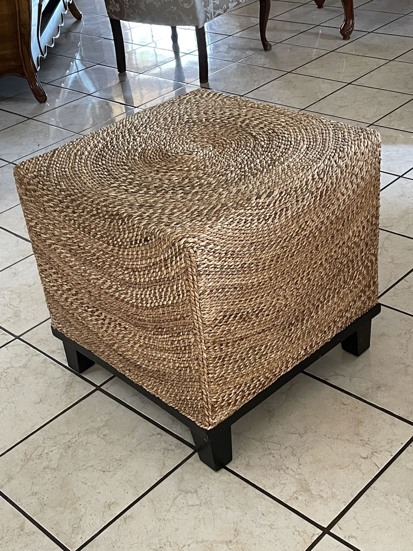 End table has never been used, has been in  storage. Frame is kiln-dried solid mahogany hardwood. Woven of banana leaf the weave is commonly referred to as 'abaca twist.' Accepting offers. 22”W x 22”D x 22”H