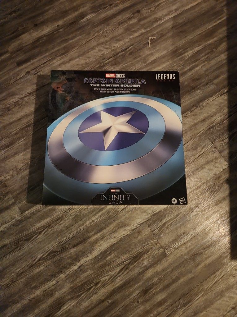 Life size hard plastic captain america the winter soldier shield silver/blue Marvel Legends series 24in/60cm (new with box) Life size hard plastic captain america shield silver/red marvel legends series 24in/60cm (Used no box)