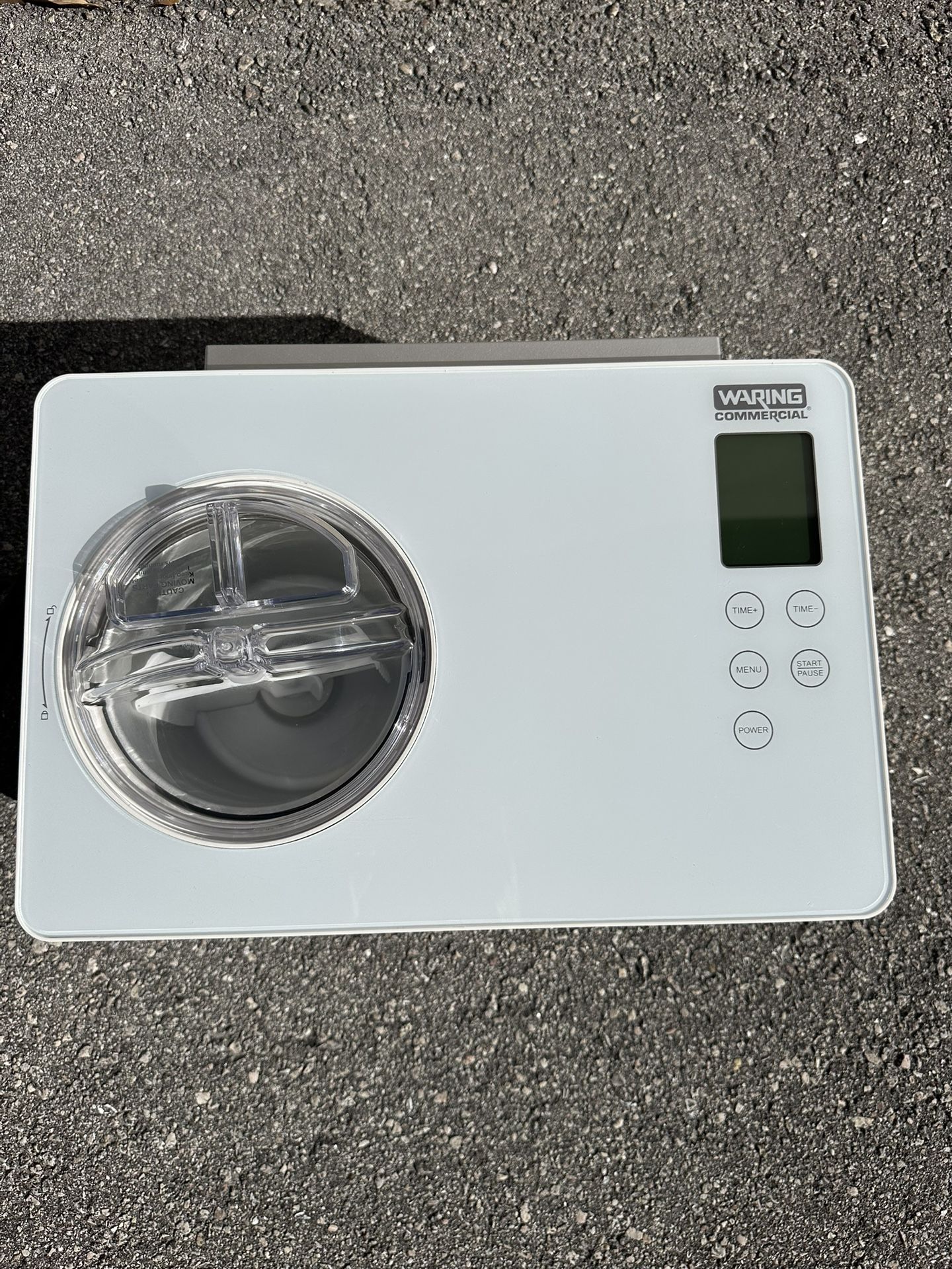 Originally $800. New, only used once for testing. Commercial ice cream machine for a project that fell through. * Makes up to 2 quarts of ice cream, frozen yogurt or gelato in about 30 minutes * Removable, see-through batch bowl and “mix-in” lid allows you to view ice cream as it mixes * Built-in compressor means NO pre-freezing required * Easy-to-clean, stainless steel exterior and touch controls * “Keep Cool” feature holds ice cream at the optimal temperature when processing is finished L 10.3” x W 16.7” x H 11.18”