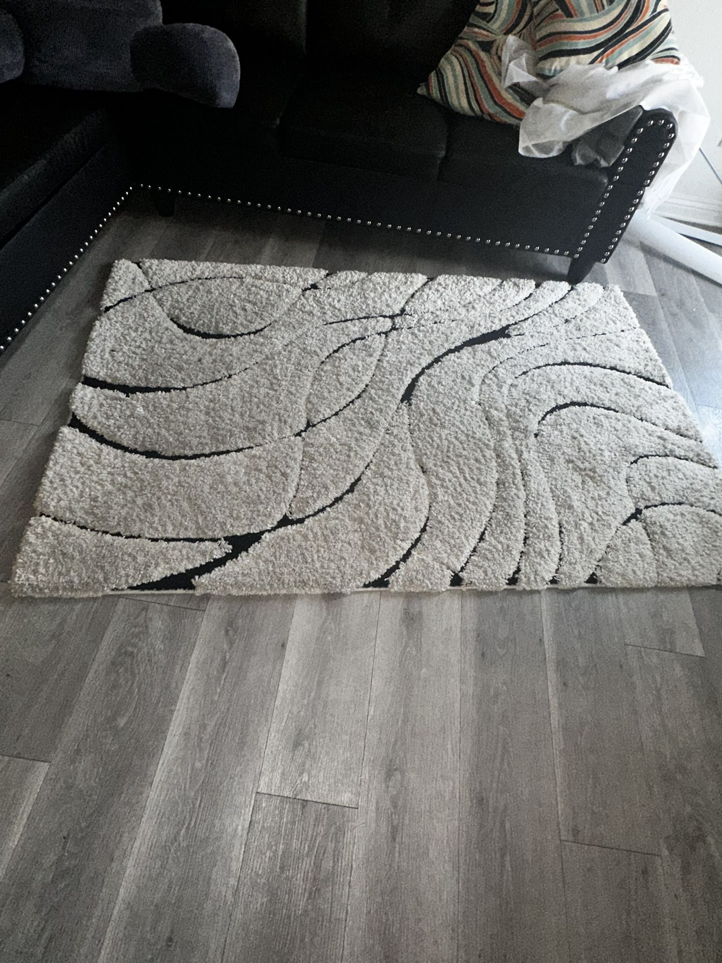 Off white and black stripes area rug 6ft length and 4ft width Needs to be washed