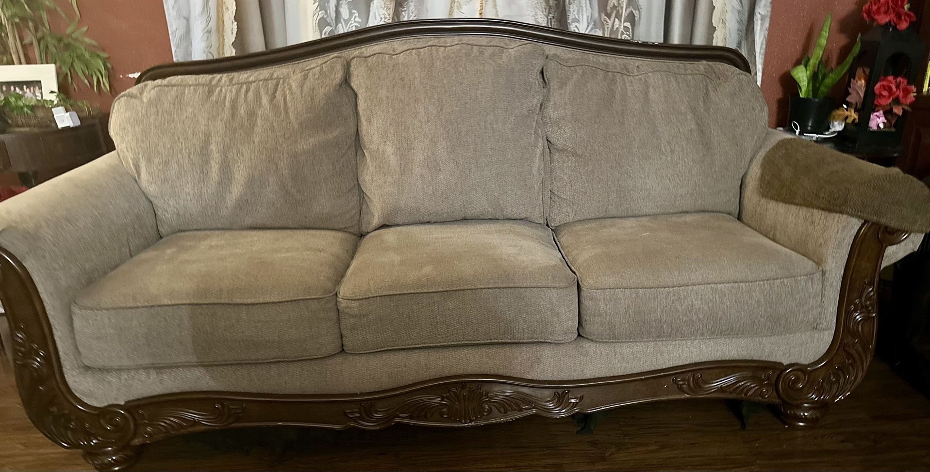 Beige sofá good condición free 3 sitters