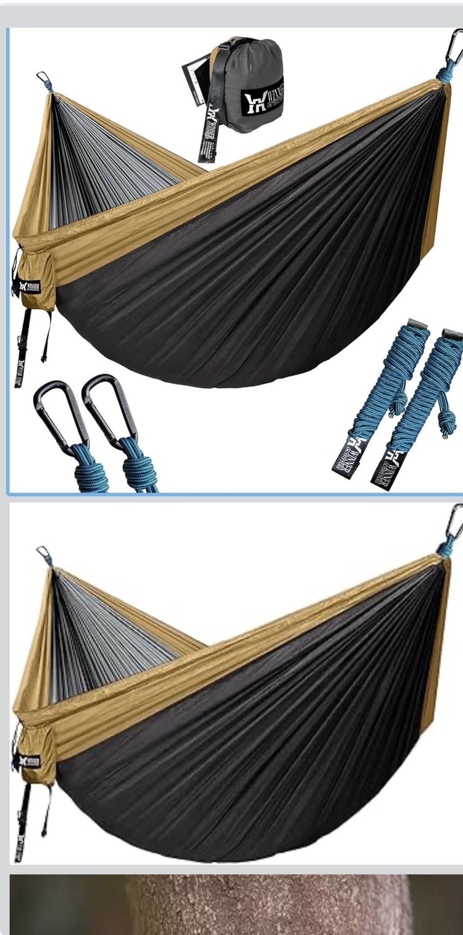 Double Camping Hammock - Lightweight Nylon Portable Hammock, Best Parachute Double Hammock for Backpacking, Camping, Travel, Beach, Yard. 118"(L) x 78"(W) By winner outfitters !