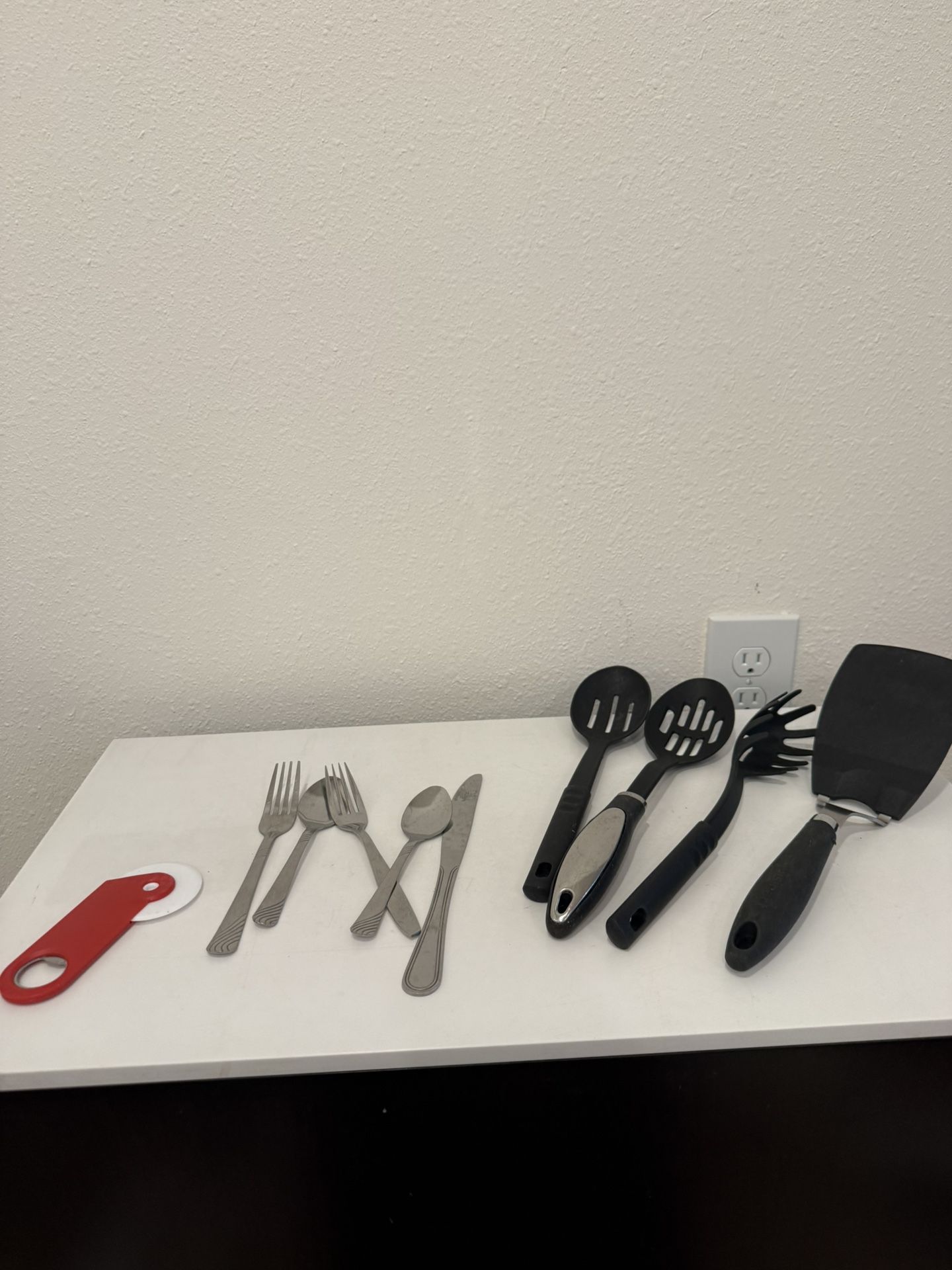 Cooking and eating utensils ◾️MUST GO ASAP!! DETAILS ⬇️‼️ ▪️ideal for general house|apartment|airbnb|dorm | office ▪️ used except for the pizza cutter and the sliver was rarely used but used for cooking (like preparing not eating ) | $ 1 each for cooking utensils $3 for sliverware $1 for pizza cutter ▪️local meet up or shipping |$8 for all ❇️ Interested? Not loving the price? Don't be shy, let's chat! • I do multiple meet up locations ***Other Bundles available MOVING EVERYTHING MUST GO "UNUSED AND USED ITEMS BOUGHT" BE SURE TO CHECK OUT MY OTHER
