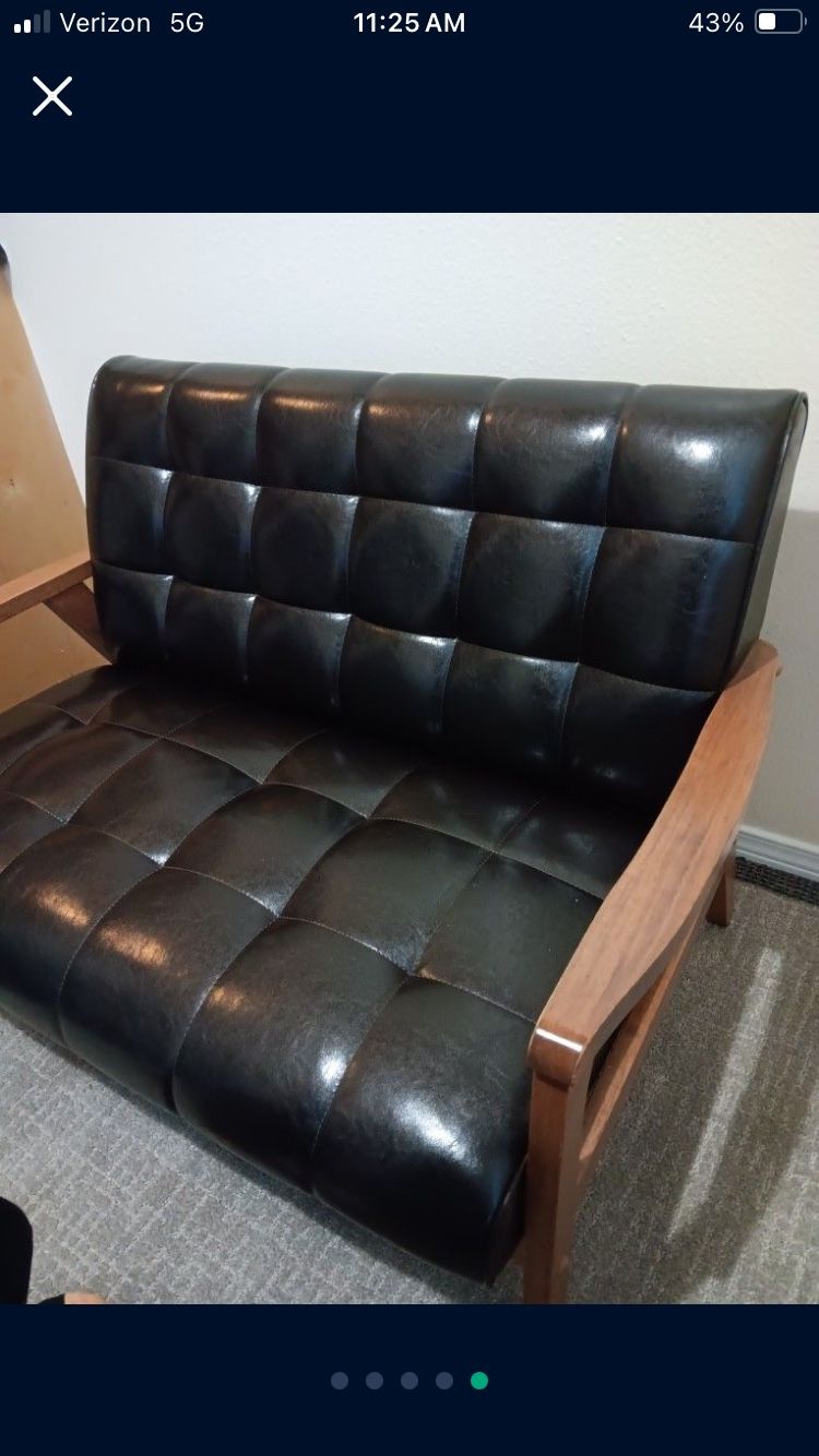 Black Faux Leather Mid century Loveseat Sofa Couch