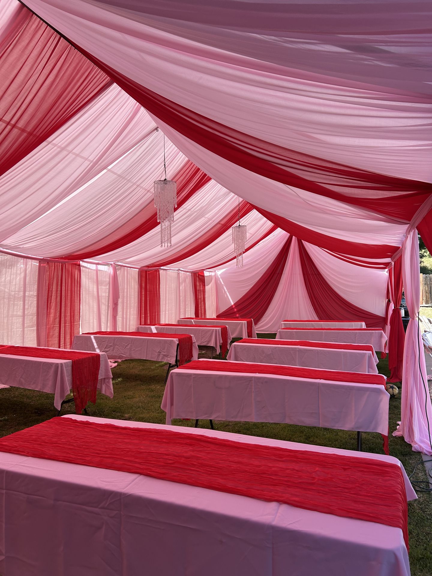 Draping canopy tables chairs etc….
