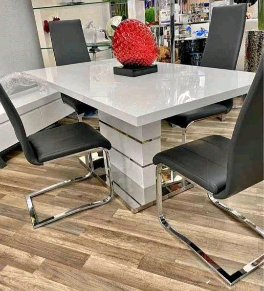 White Glossy Dining Table Set 4 Chairs New 63x35