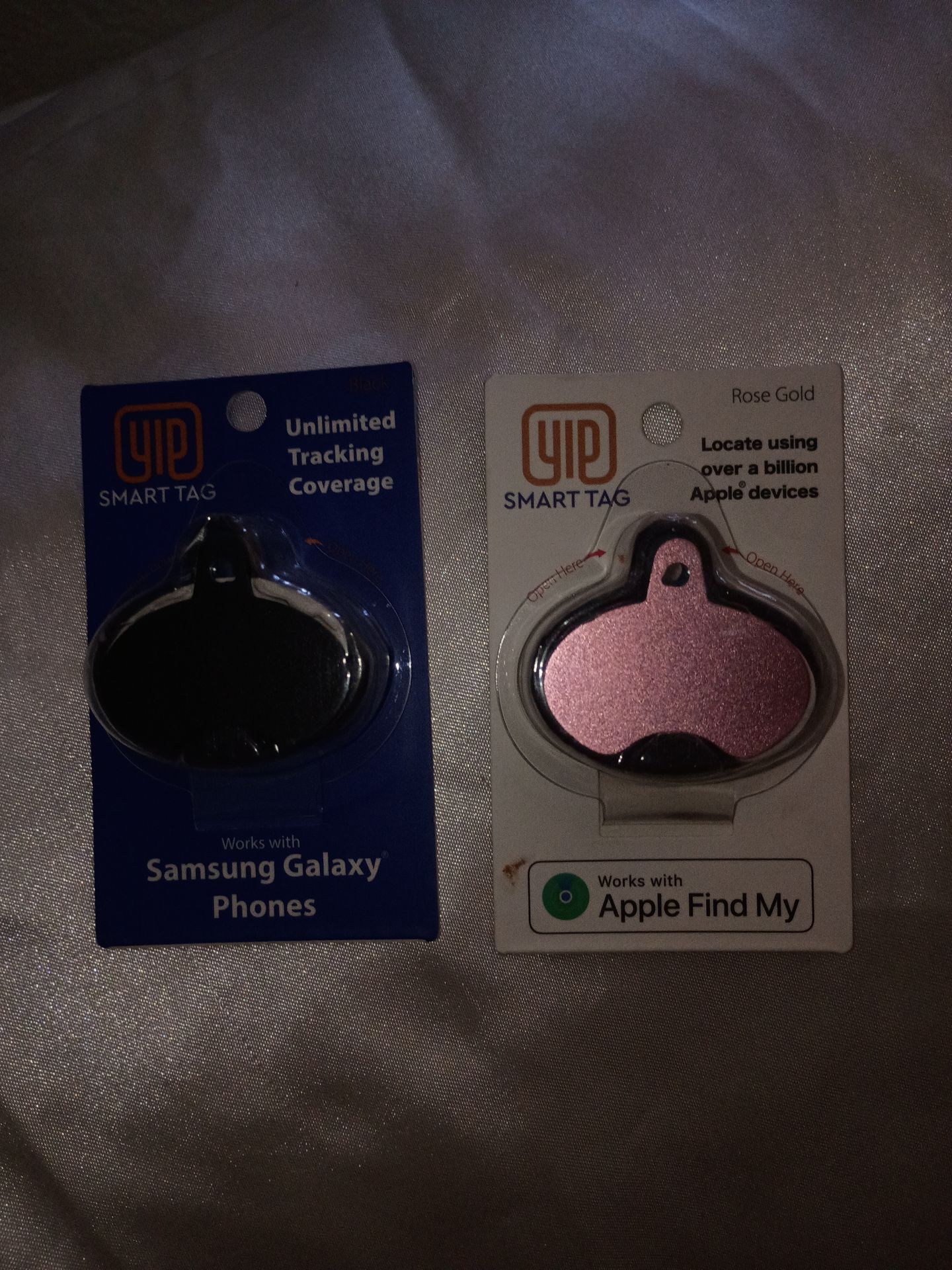 2 brand new never been opened smart tags. One is black and works with Samsung Galaxy, one is rose Gold and works with iPhone. Asking 20