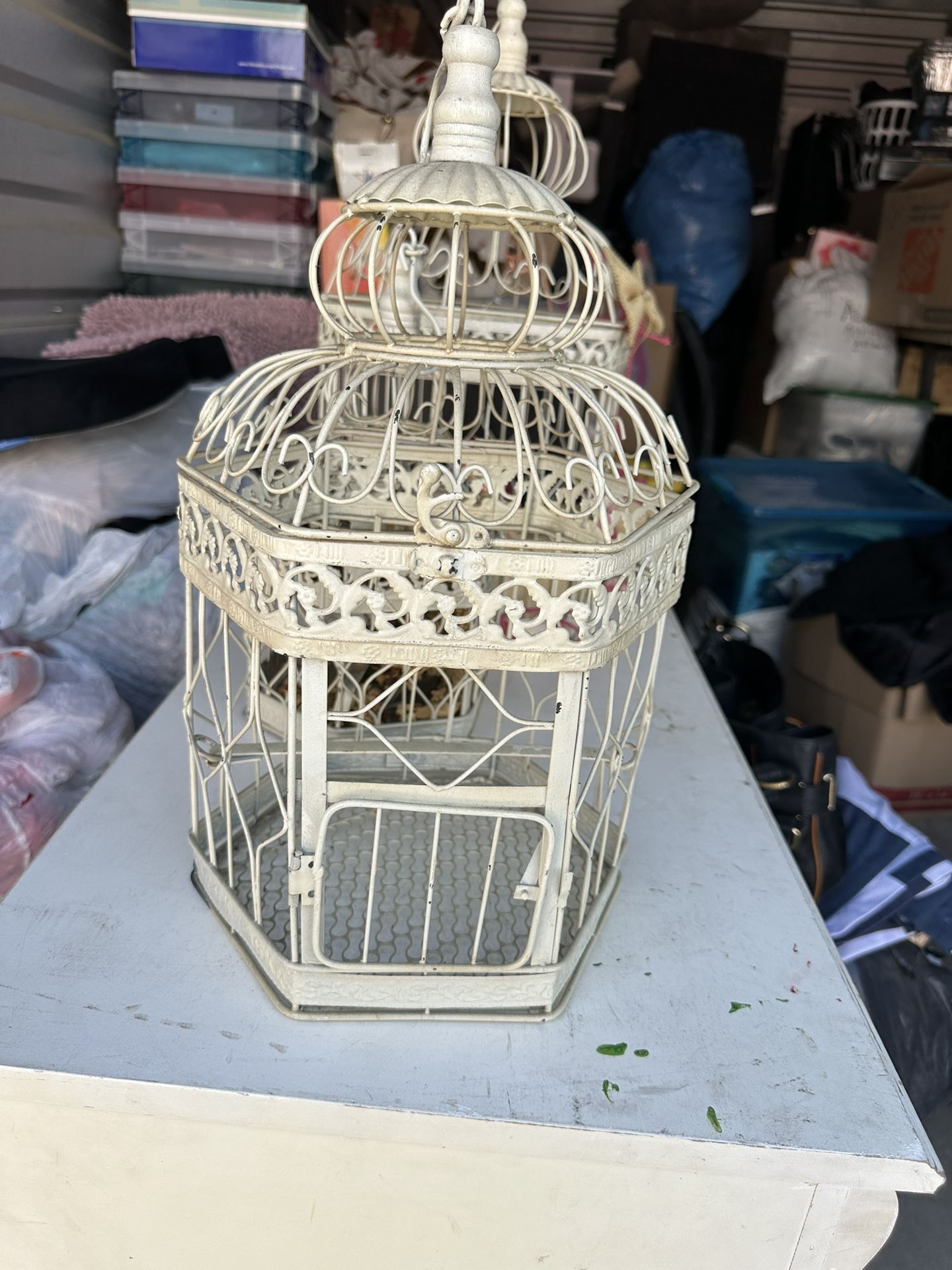 3 Vintage birdcages. You can keep the same color or make it a project and spray paint it whichever color you like. I used them for my daughter’s quince as gift card holders. I have other items for sale too.