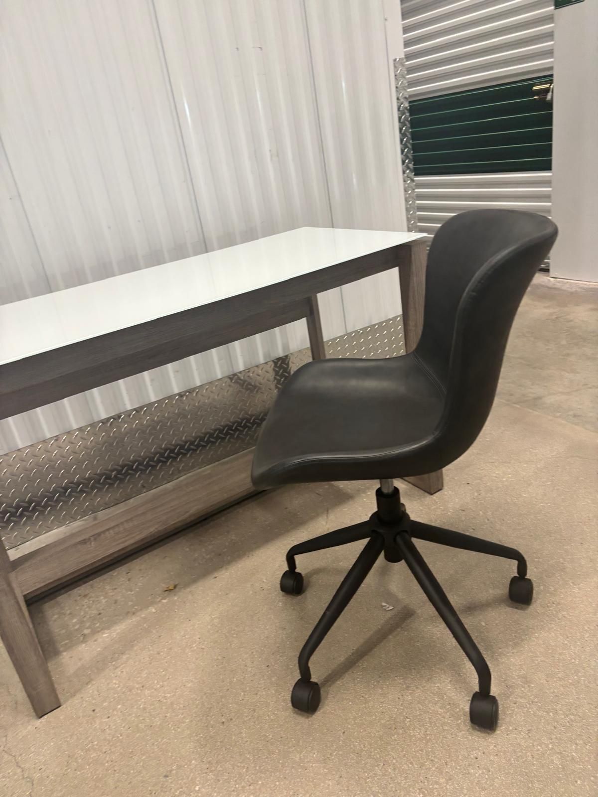 Glass top wood base modern desk included leather adjustable chair 48” wide , 22” depth , 30” high. $150