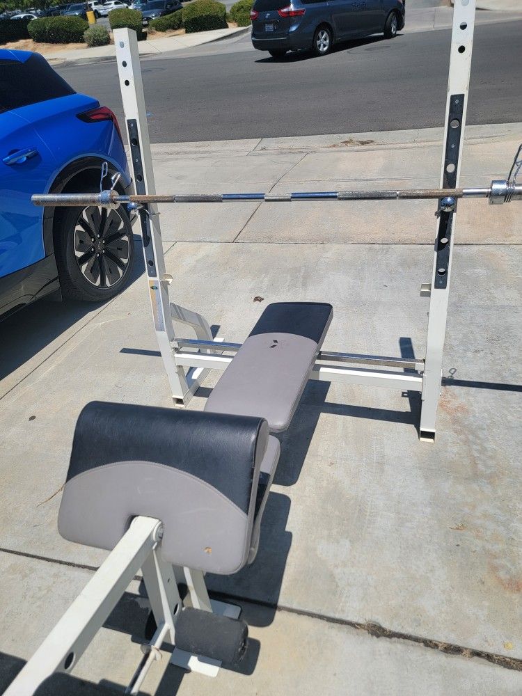 Very Strong Olympic Weight Bench With 7 Ft Olympic Bar. $300. Weight plates for sale as well.