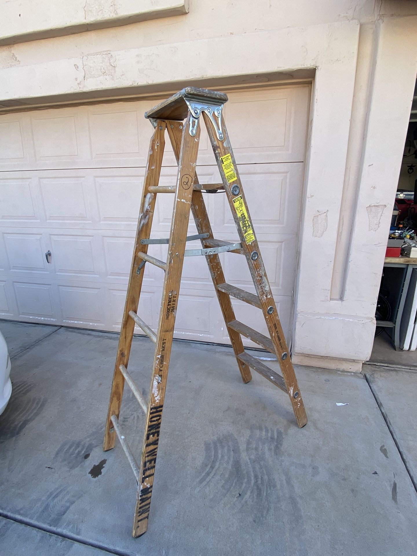 6’ Ft Goshen Ladder This ladder is very sturdy and strong. Goshen is a very good brand. Has some paint stains which won’t hurt the use of ladder. $25.00 PICK UP ONLY FCFS area of North Glendale 51st ave & Union Hills