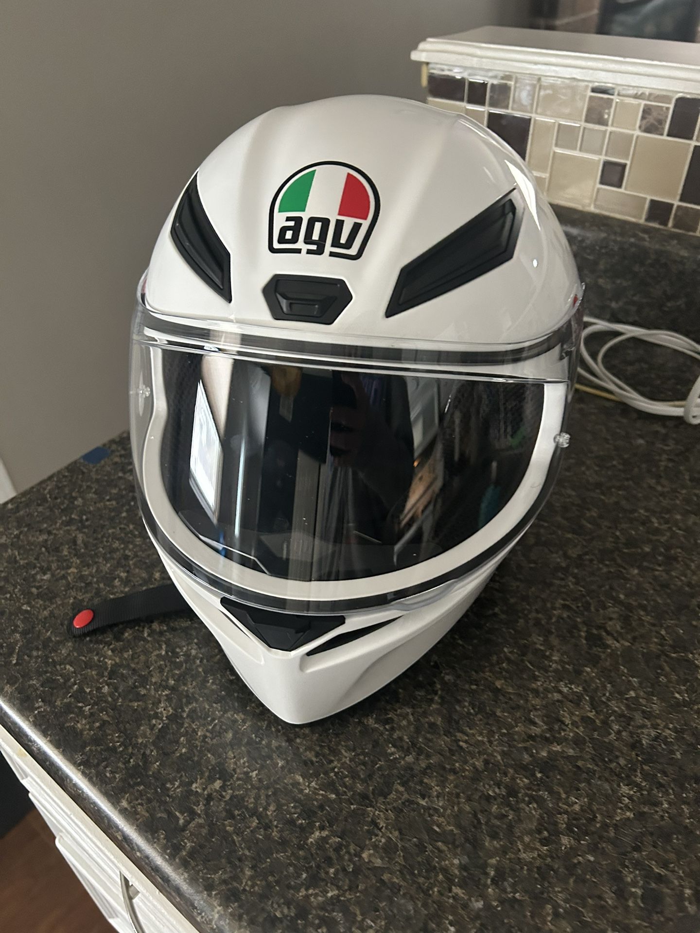 it’s to small for me i didn’t even put it on so it has box and everything that comes with it has zero scratches and zero rides on it basically brand new i have it listed for $205 and it’s $219 everywhere else so this is the cheapest agv k1 small in white brand new