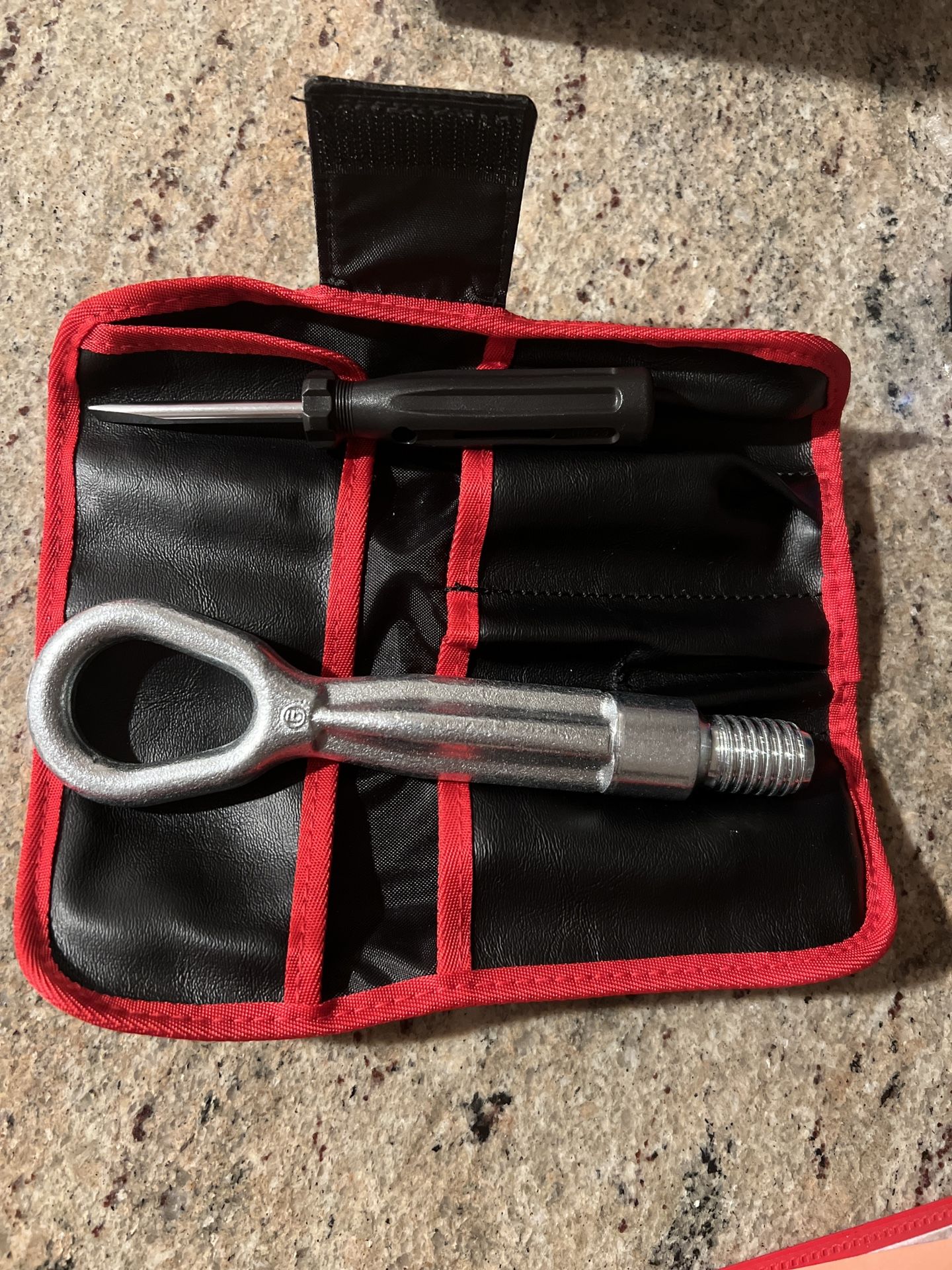 Tool kit with tow rod and screwdriver for BMW. Came off a 2012 BMW M3. Should fit most BMWs. You can try before you buy