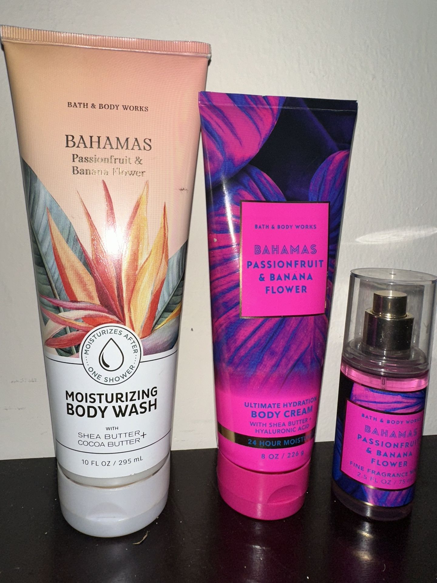 Bahama passion fruit & Banana flower Perfume & lotion brand new Body wash used once Keynotes on the back Norfolk 23505