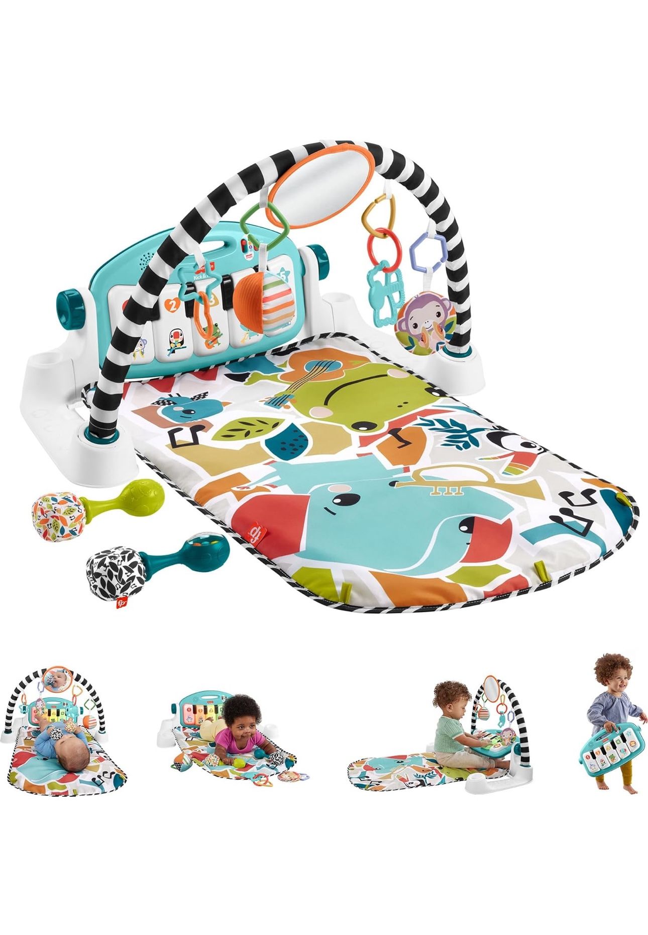 Fisher-Price Baby Musical Toy Set Glow and Grow Kick & Play Piano Gym Blue Playmat with 2 Rattle Maracas for Newborns Ages 0+ Months