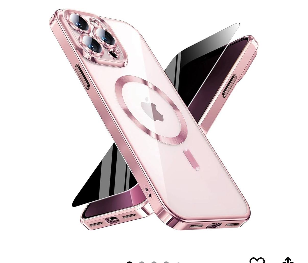 Magnetic for iPhone 13 Pro Max Case with Privacy Screen Protector & Full Camera Cover,[Non-Yellowing] Plating Glossy Soft Shockproof Clear Phone Case with MagSafe Women Girls for 13 ProMax,Pink