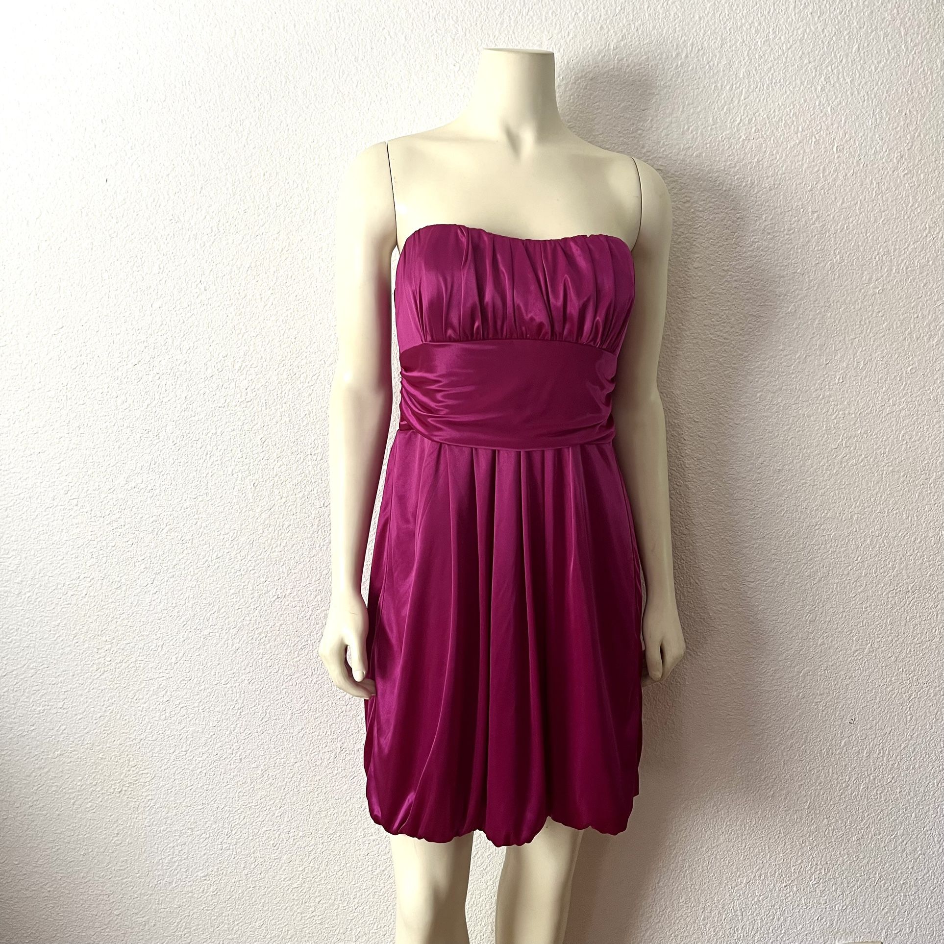 Strapless dress from the brand "Snap magenta pink cocktail or party dress featuring a gathered front bust, darts for a contoured fit, a high gathered waist, and a gathered bottom hemline, creating a bubble-style silhouette. The dress is fully lined and designed as a pull-over style without zippers or hooks. The dress is a little unstitched on the inside of the back and few snags on fabric. Sold as is Please see all photos for details. -Help us recycle this garment so it doesn't end up on the landfills - Smoke Free Environment -Measurements & Material: see photos -Colors may slightly vary from photography lighting Will ship same/next business day 2 A-21