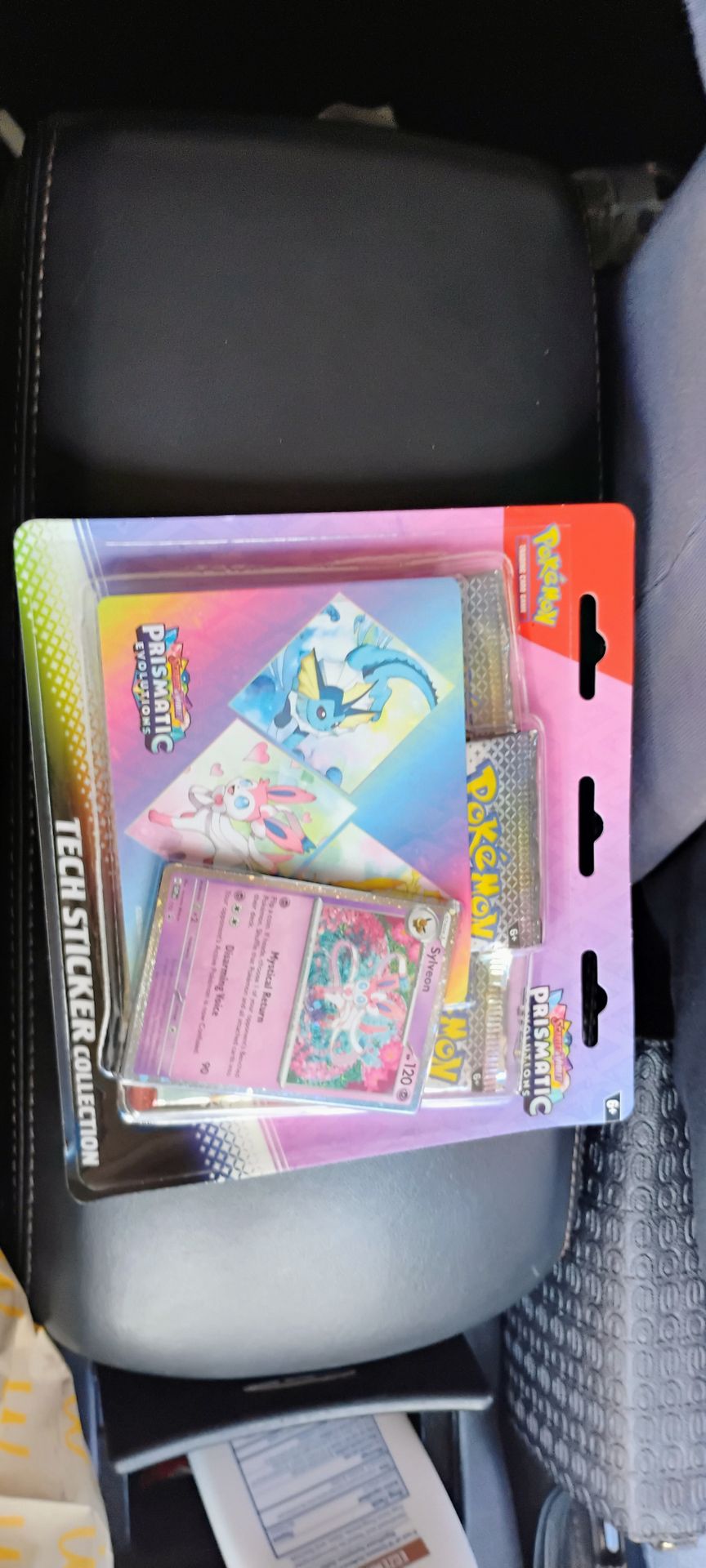Prismatic evolutions Pokemon tech sticker pack three packs of prismatic evolutions with a Sylveon promo card