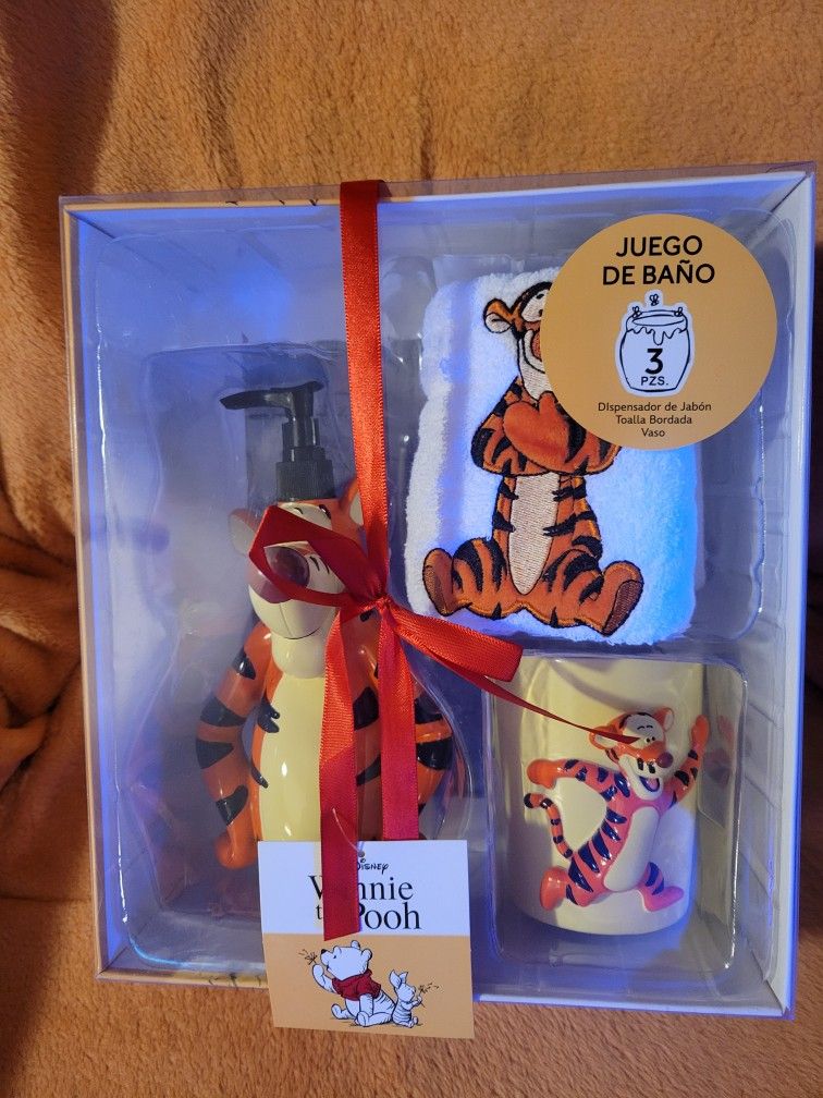 Bathroom set. Towel, cup, soap dispenser. TIGER FROM WINNIE THE POOH. Cash and pick up only
