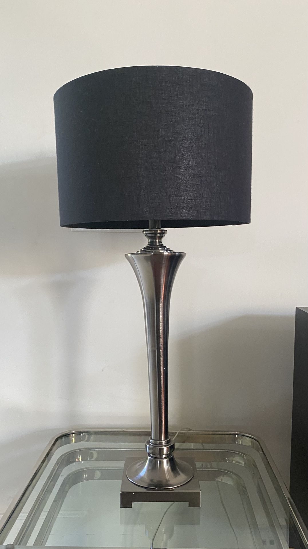 Polished Nickel Base Black Drum Shade 33"H x 16"W Good Condition 33155 Pickup