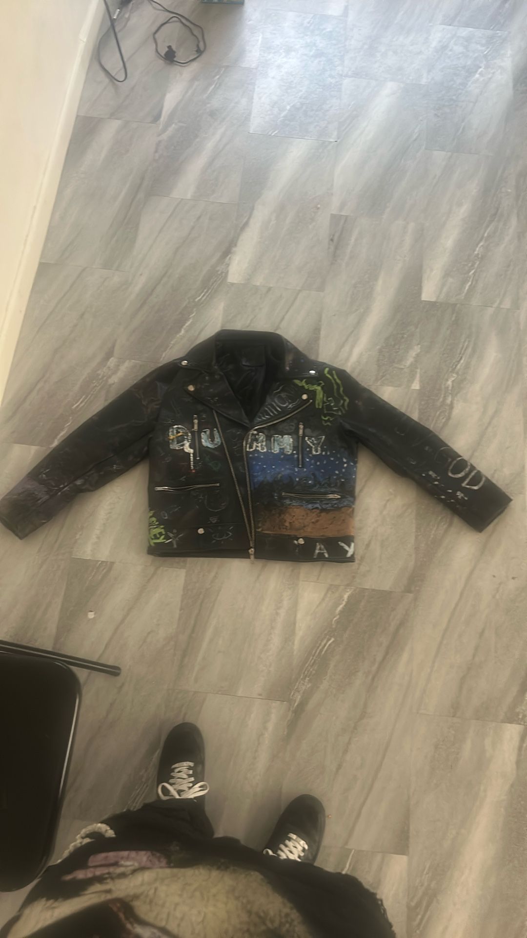 Custom Design By myself. It’s been worn for a while now. Still looks fresh and brand new. No rips or tears. Goes with any outfit or streetwear. Selling it for $60. If you want to negotiate a different price let me know!