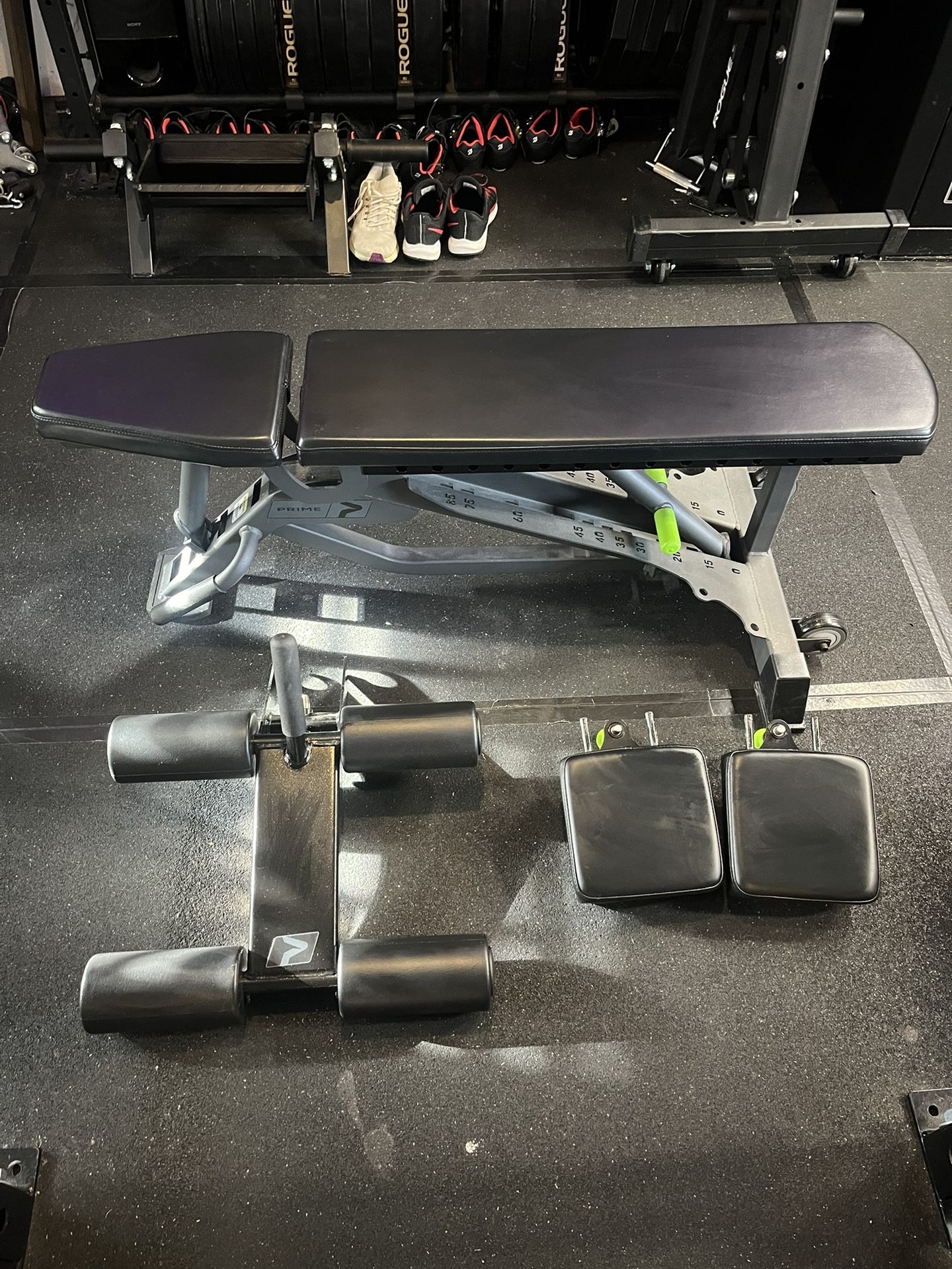 Prime fitness adjustable bench with decline attachment and curl attachments. In great condition. Pick up in Shoreline.