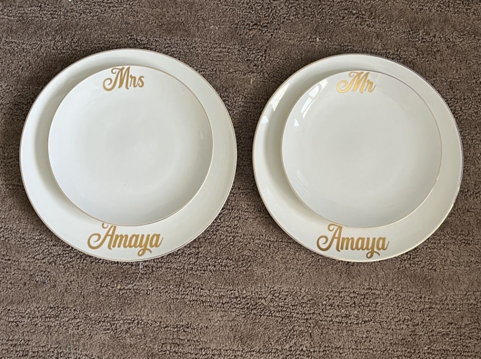 Special Sweetheart table plates, Party plates, Different Colors and Font options available 10.5” & 8” available white
