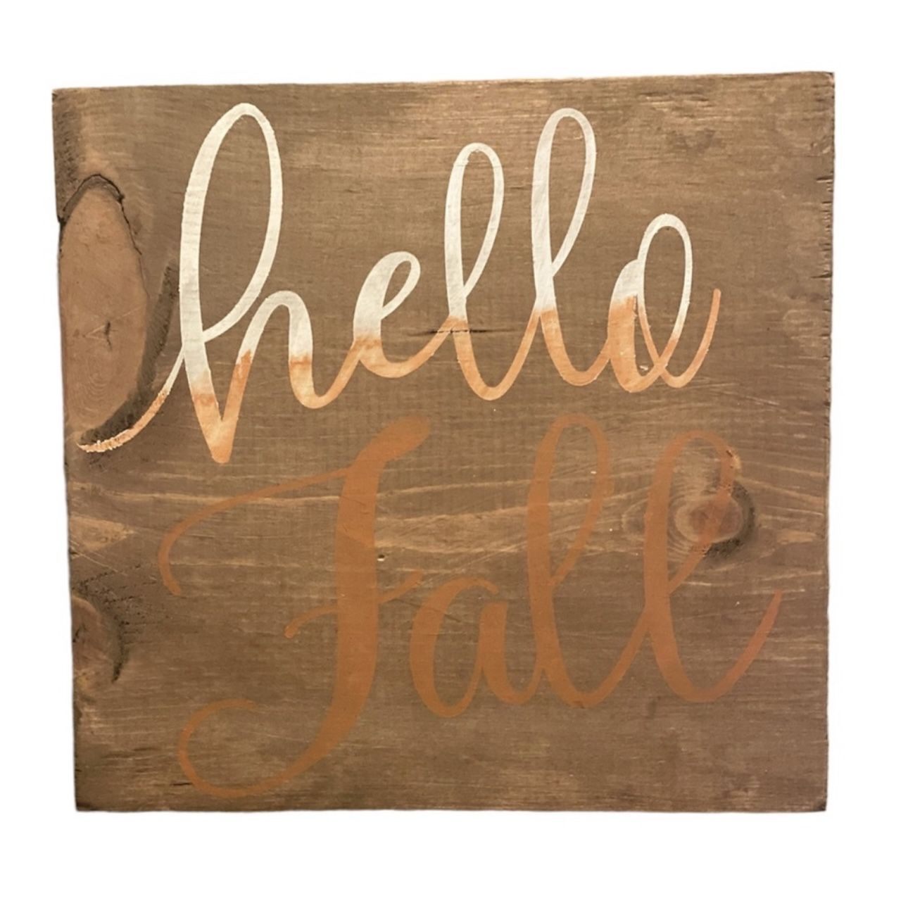 New Hello Fall Sign Decor Wood Hand Painted Brown Orange