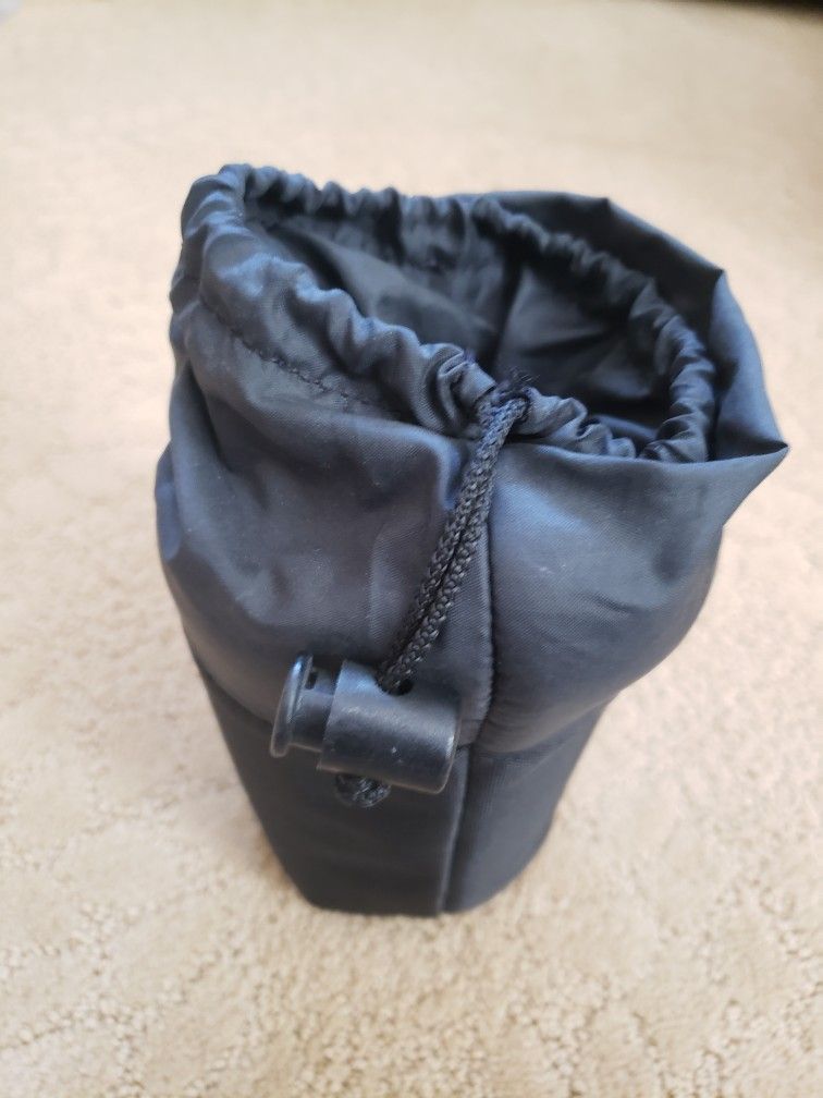 Clean and in excellent condition. Lower end prime lenses and normal and wide zoom lenses will fit perfectly. Pouch too small for professional level lenses.