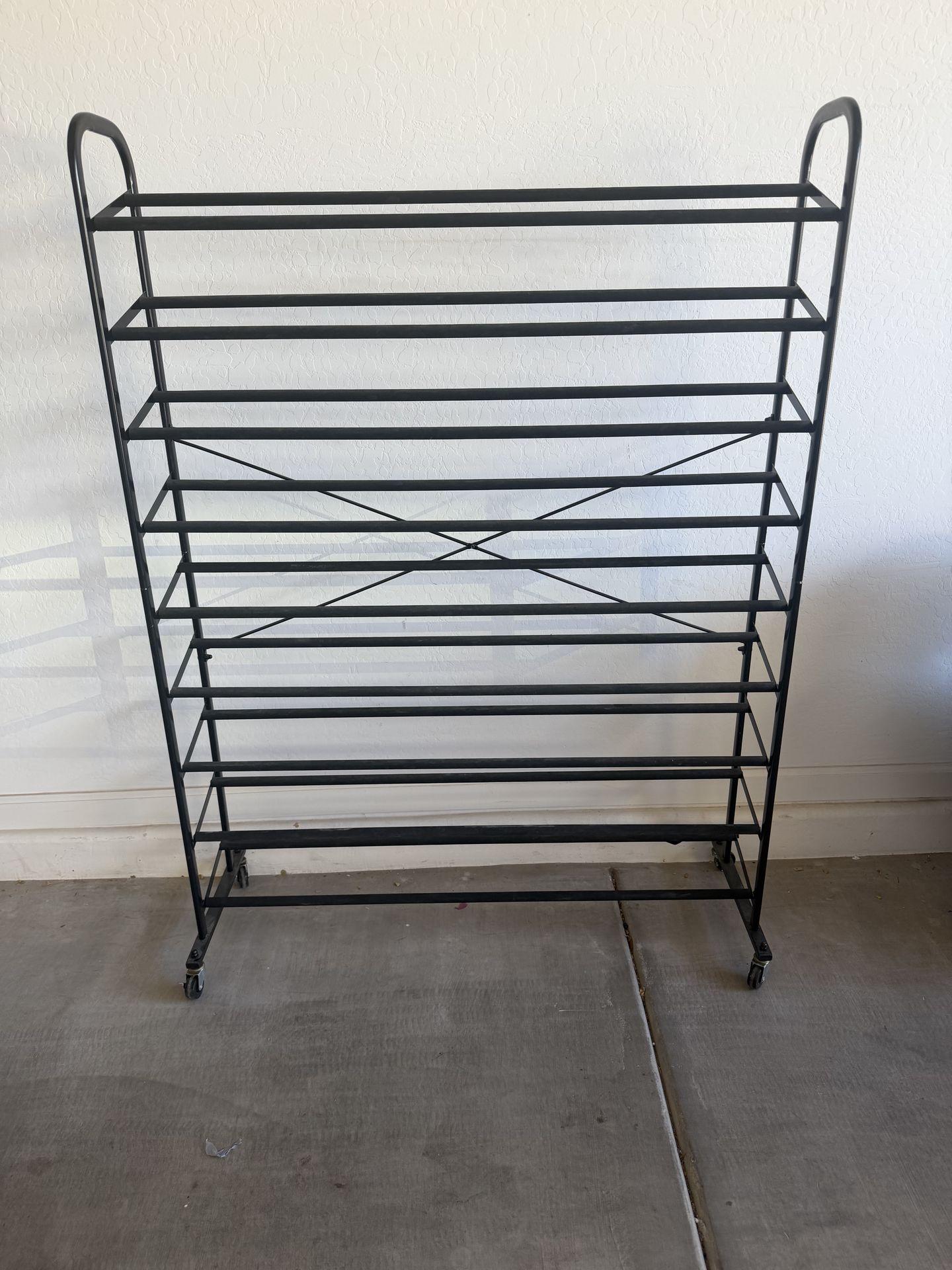 Used but in excellent clean condition! Has wheels so can be easily moved. Holds up to 45 pairs of shoes.